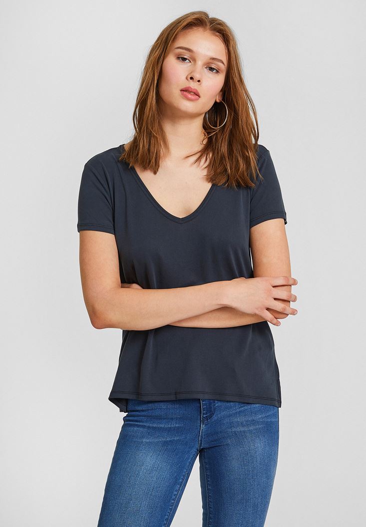 • Bayan Siyah Yumuşak Dokulu V Yaka Basic Tişört