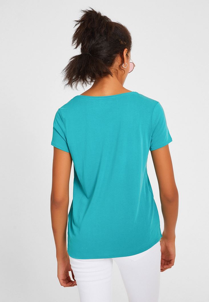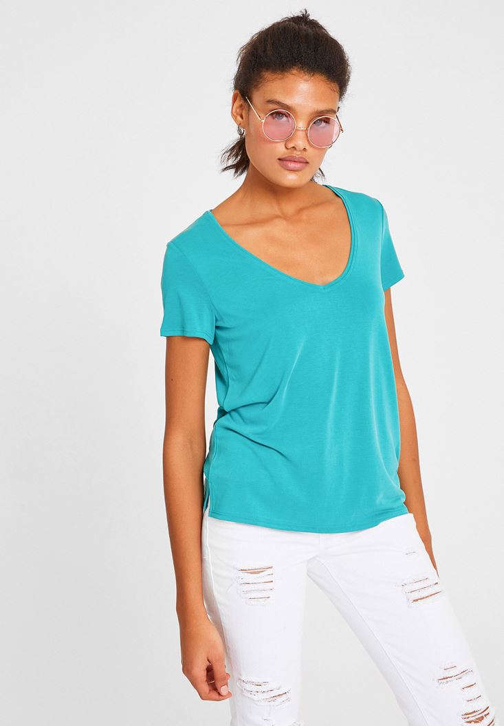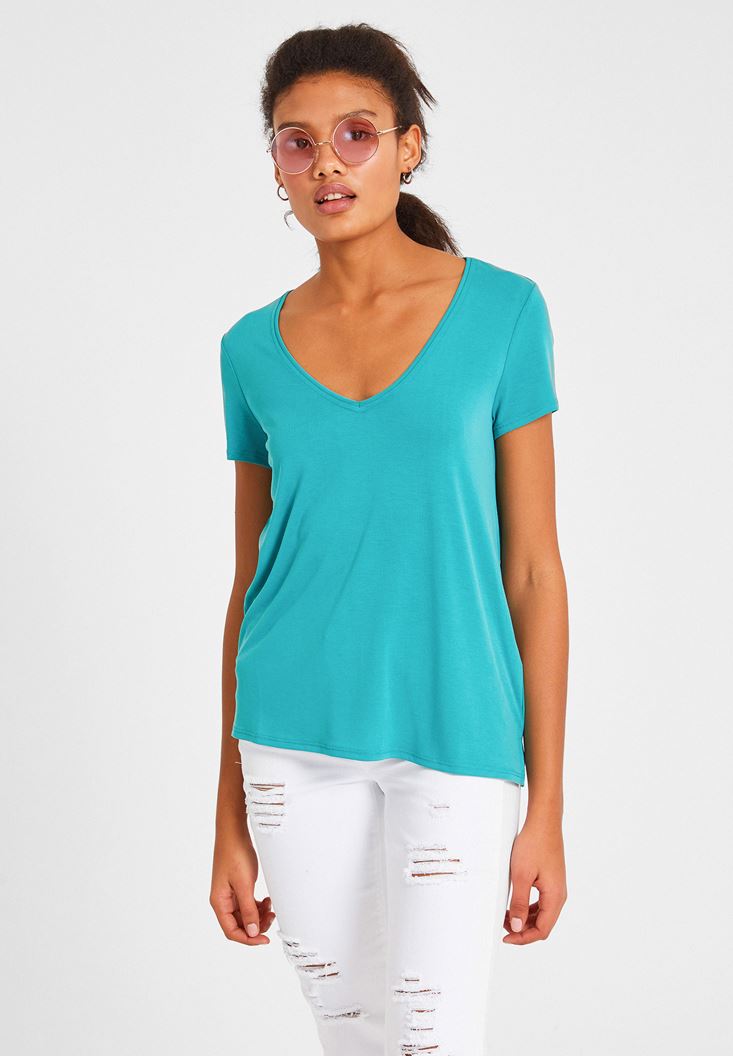 • Bayan Yeşil Yumuşak Dokulu V Yaka Basic Tişört