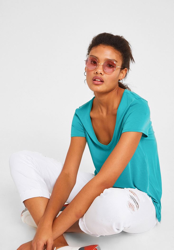 Yumusak Dokulu V Yaka Basic Tisört modeli dökümlü kesimi, yumusak dokusu ve dikkat çekici sadeligi ile her zaman kullanmaktan keyif alacaginiz parçalardan birisi olacak. V yaka kesimi ile zarif bir görünüme sahip olan tisört modeli ile konforlu ve sik kombinler yapabilirsiniz. Dökümlü kesimi ile rahatliginizi ön plana çikaran tasarim ayni zamanda sahip oldugu yumusak dokusu ile de her zaman iyi hissetmenizi saglayacak. Modal lifinin nefes alan yapisi ve nem emiciligi sayesinde en hareketli günlerinizde bile konforlu hissetmenize yardimci olacak tasarimi birbirinden farkli tarzlara sahip kombinlerinizde tercih edebilirsiniz. Konforu ve sikligi bir araya getiren OXXO tasarimlari arasinda öne çikan tisört modeli ile kendinize özgün kombinler yapabilirsiniz.