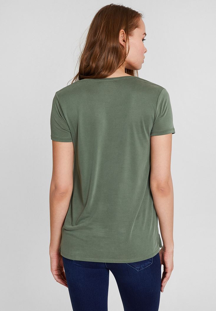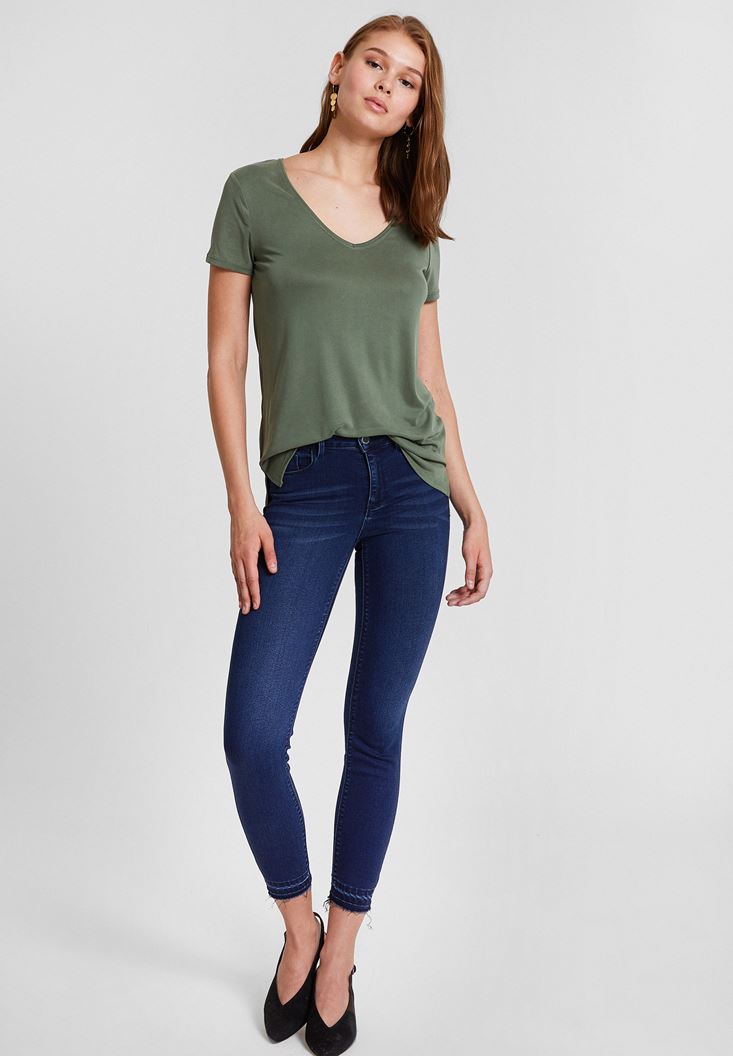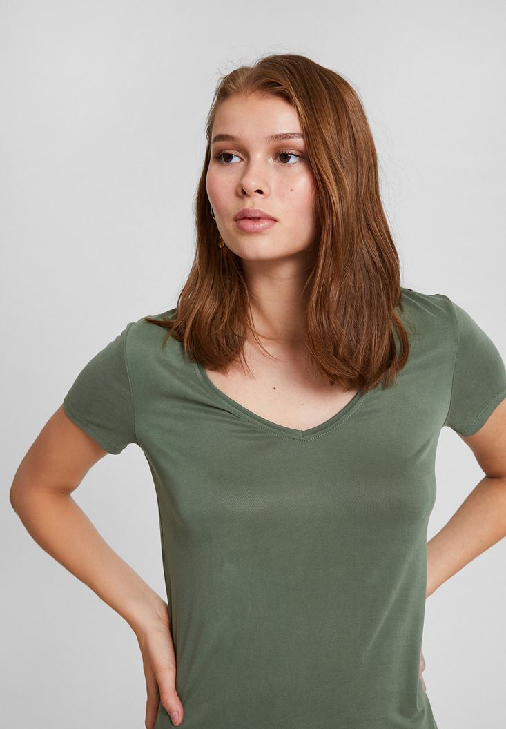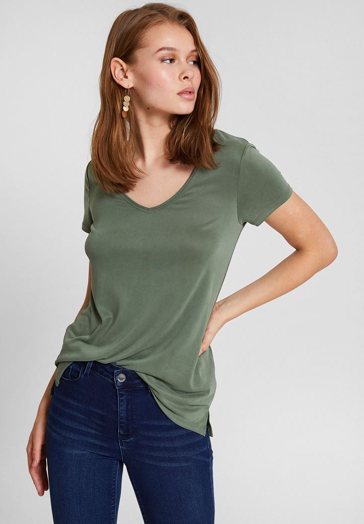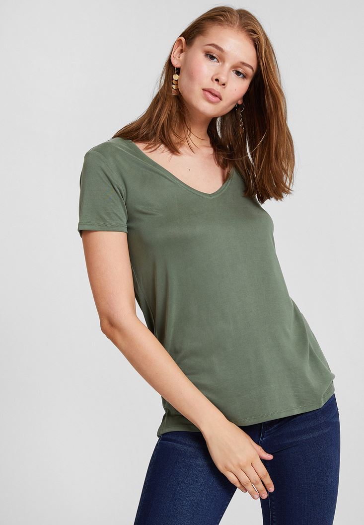 • Bayan Yeşil Yumuşak Dokulu V Yaka Basic Tişört