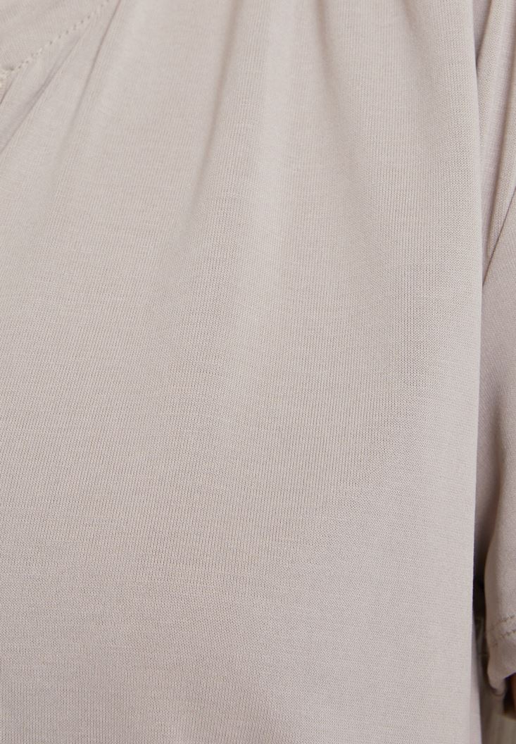 Krem Yumuşak Dokulu V Yaka Bluz
