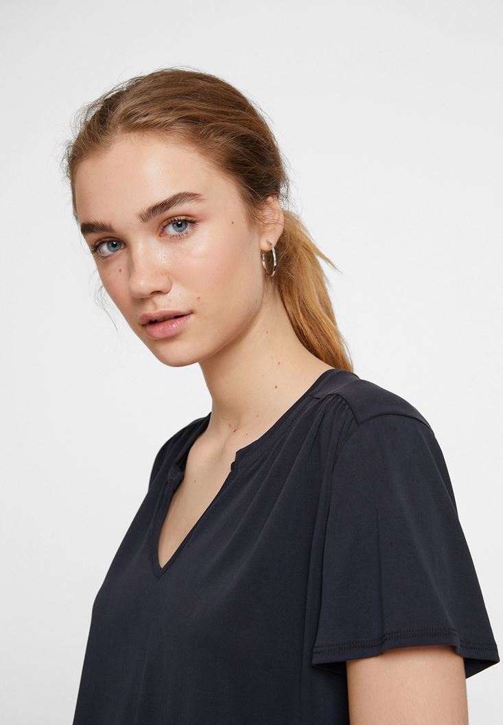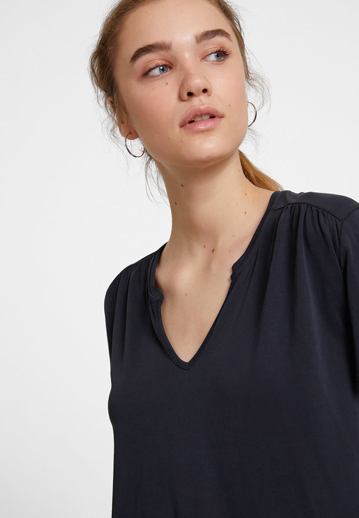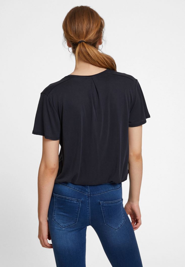 Siyah Yumuşak Dokulu V Yaka Bluz