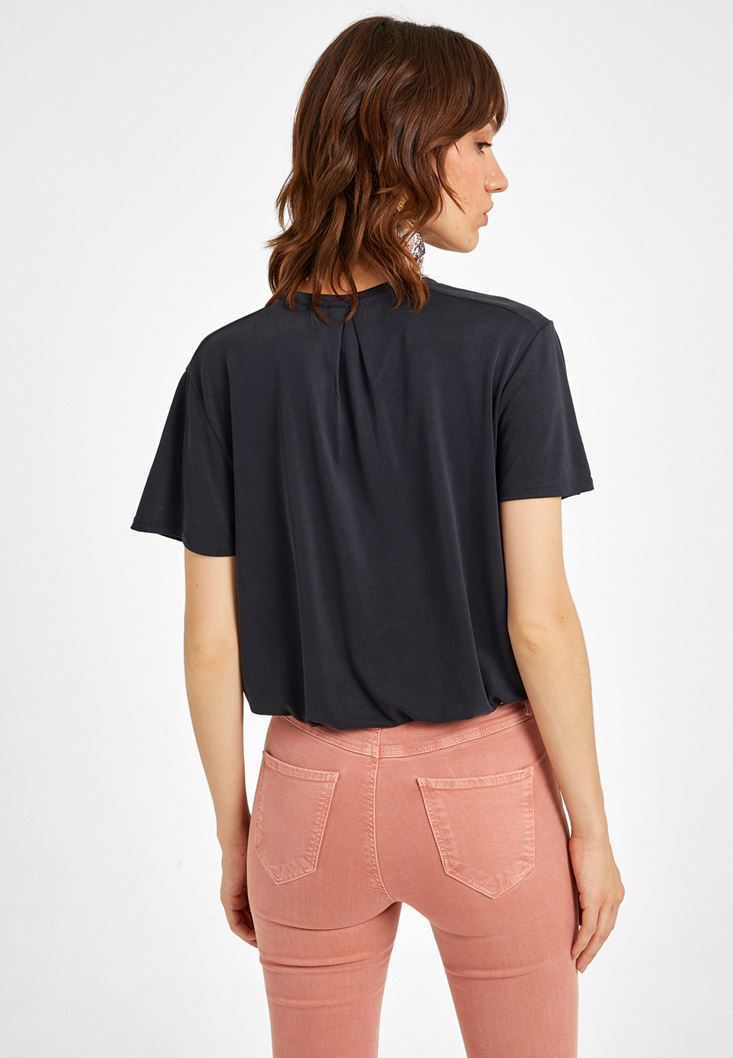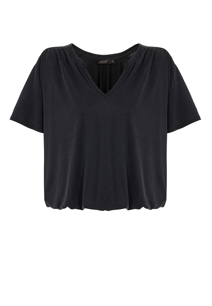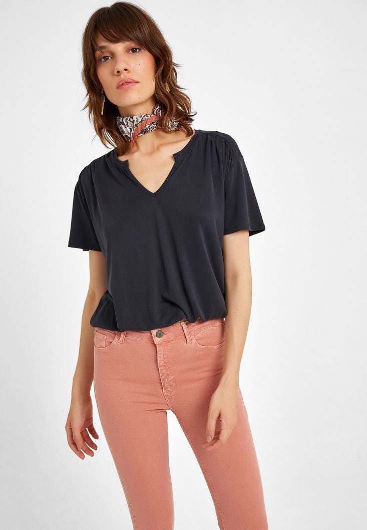 Siyah Yumuşak Dokulu V Yaka Bluz
