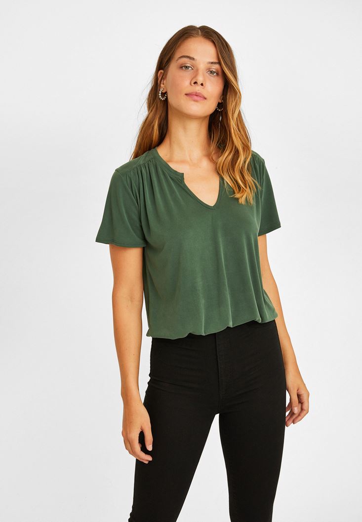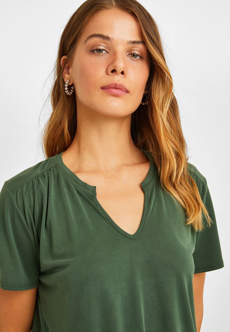 • Bayan Yeşil Yumuşak Dokulu V Yaka Bluz