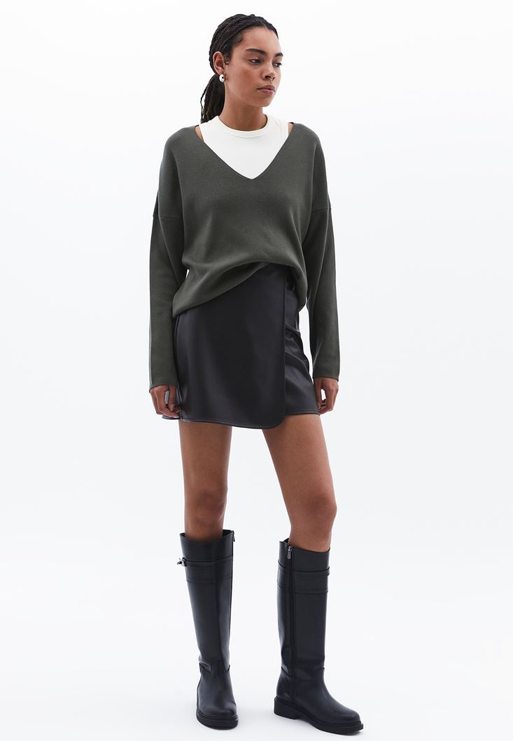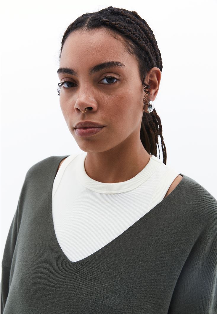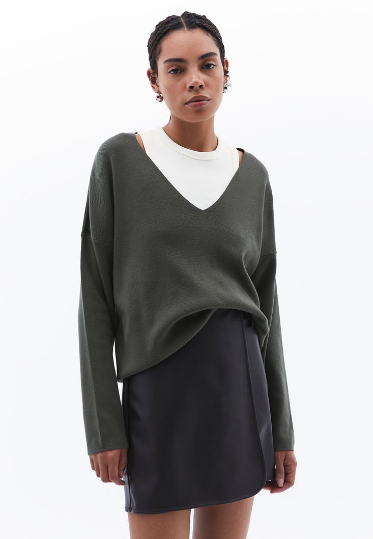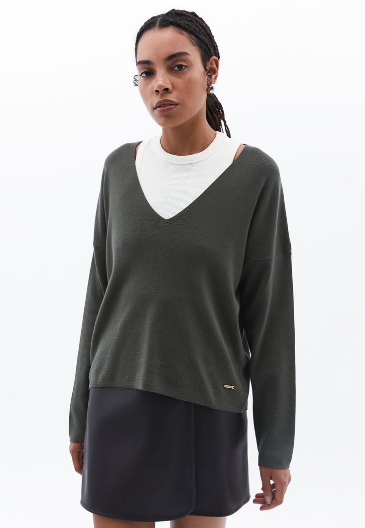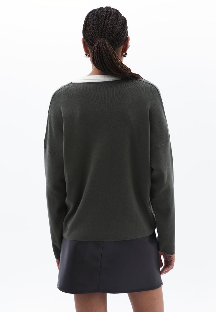 • Bayan Yeşil Yumuşak Dokulu V Yaka Kazak