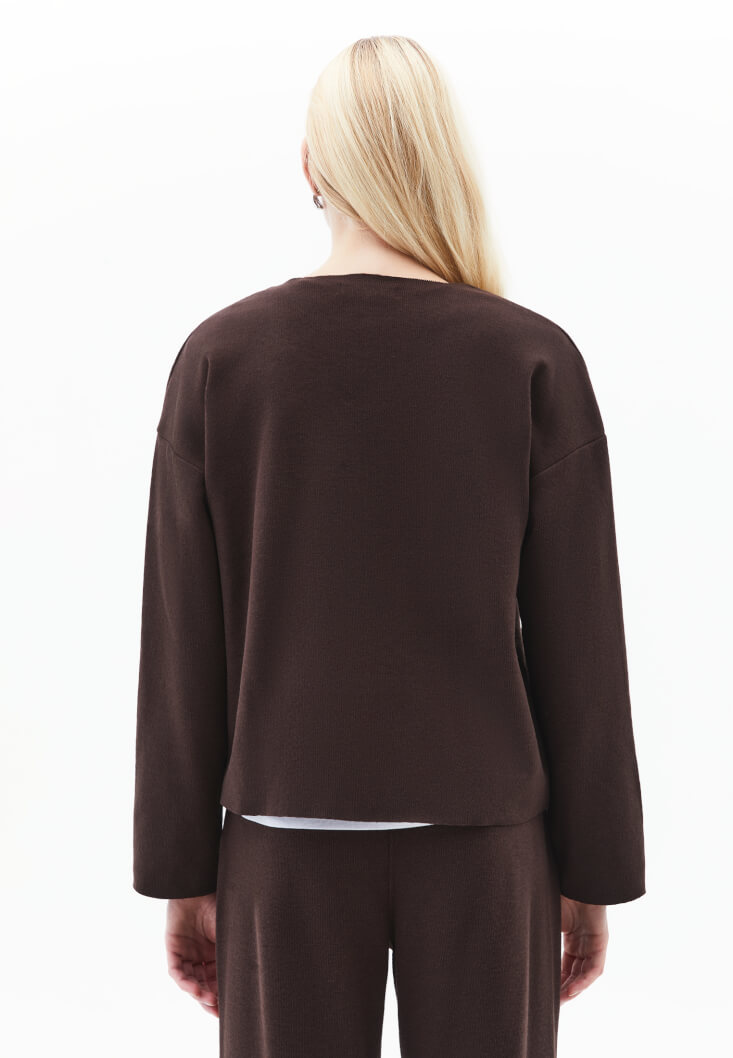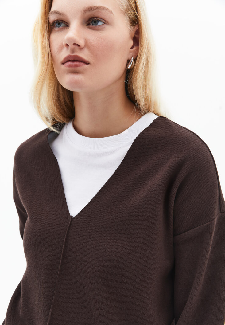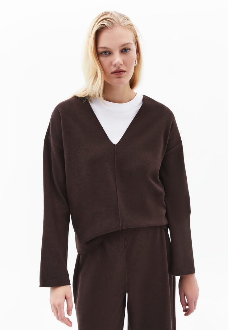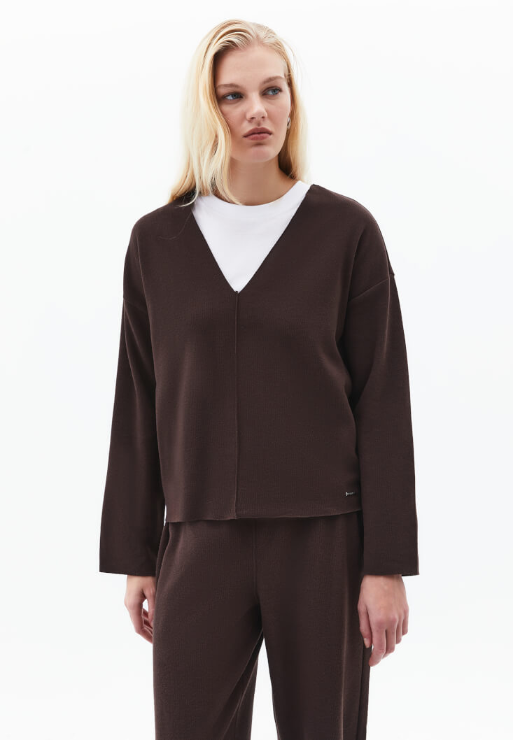• Bayan Kahverengi Yumuşak Dokulu V Yaka Kazak