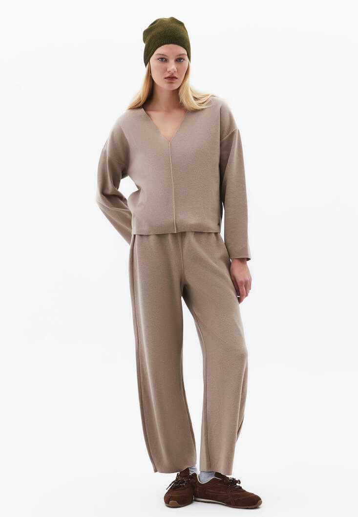 • Bayan Kum Beji Yumuşak Dokulu V Yaka Kazak