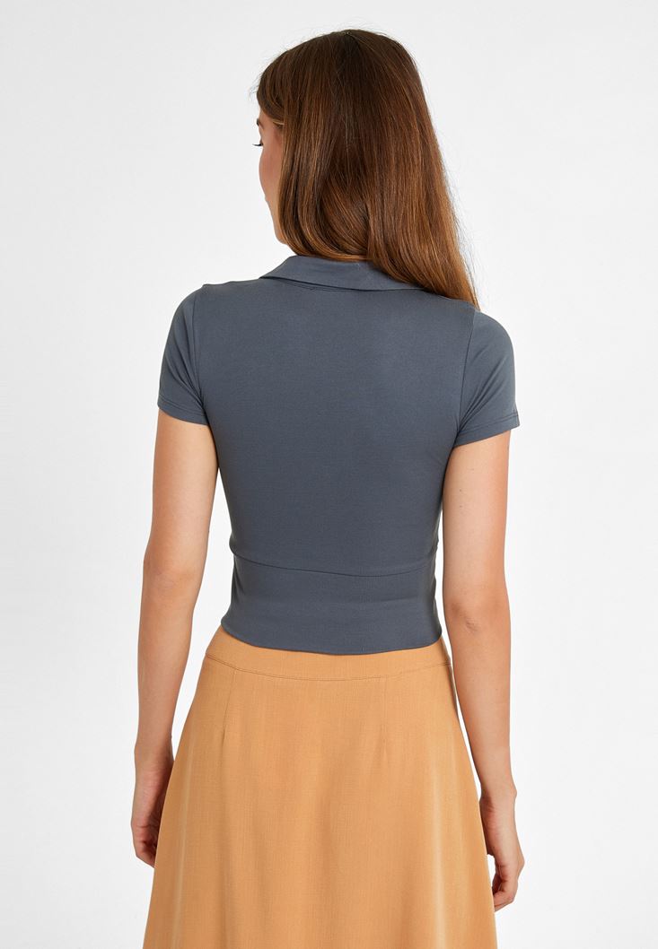 • Bayan Gri Yumuşak Dokulu V Yaka Kısa Tişört