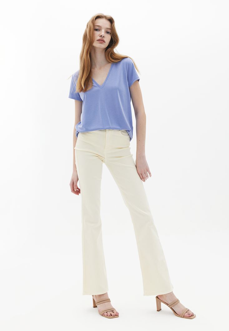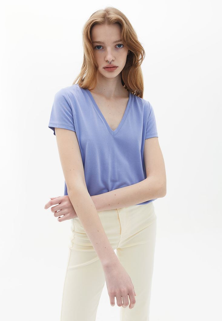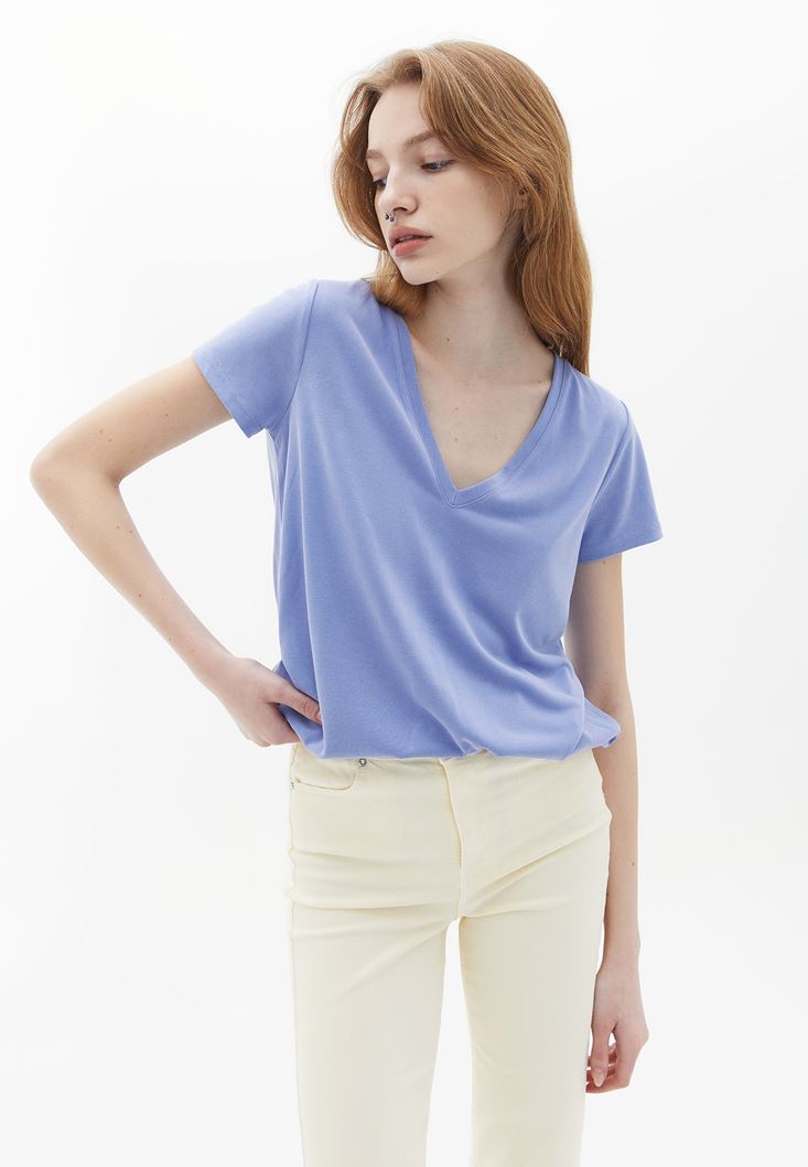 • Bayan Mavi Yumuşak Dokulu V Yaka Tişört ( MODAL )