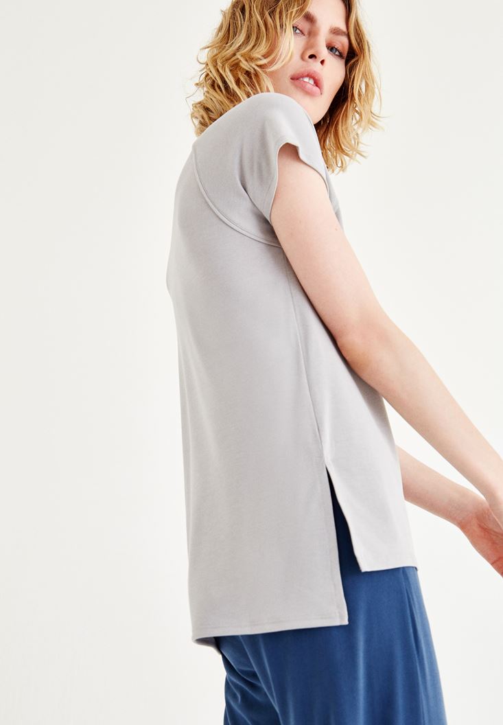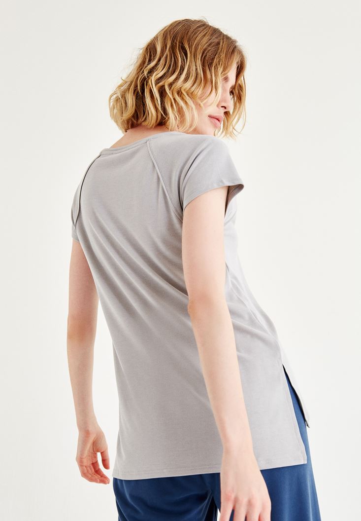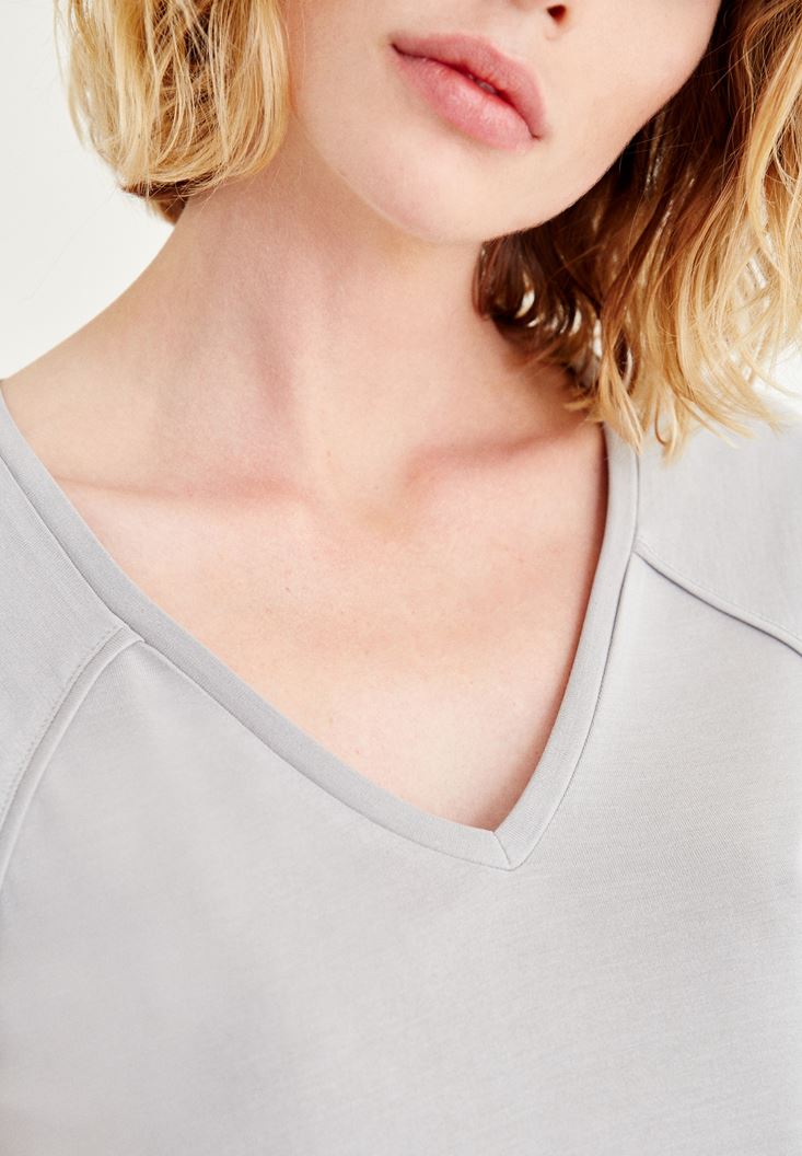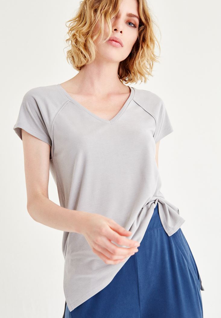• Bayan Gri Yumuşak Dokulu V Yaka Tişört