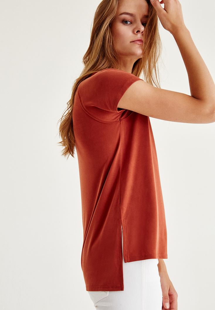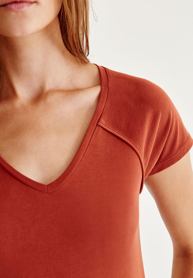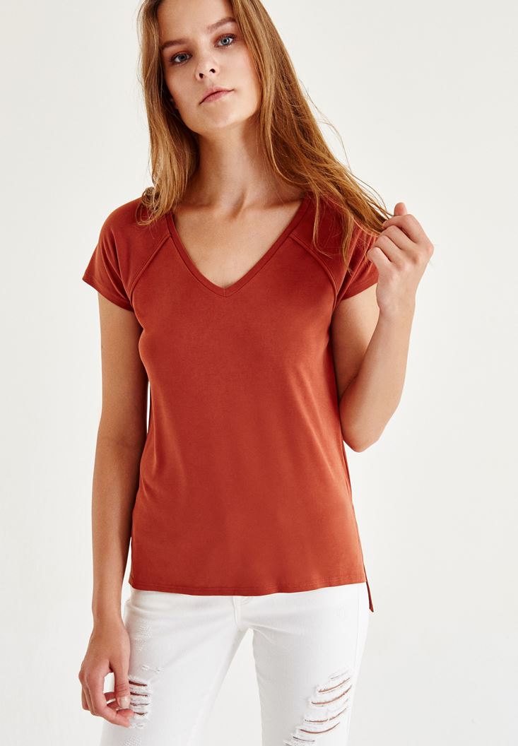 • Bayan Kahverengi Yumuşak Dokulu V Yaka Tişört