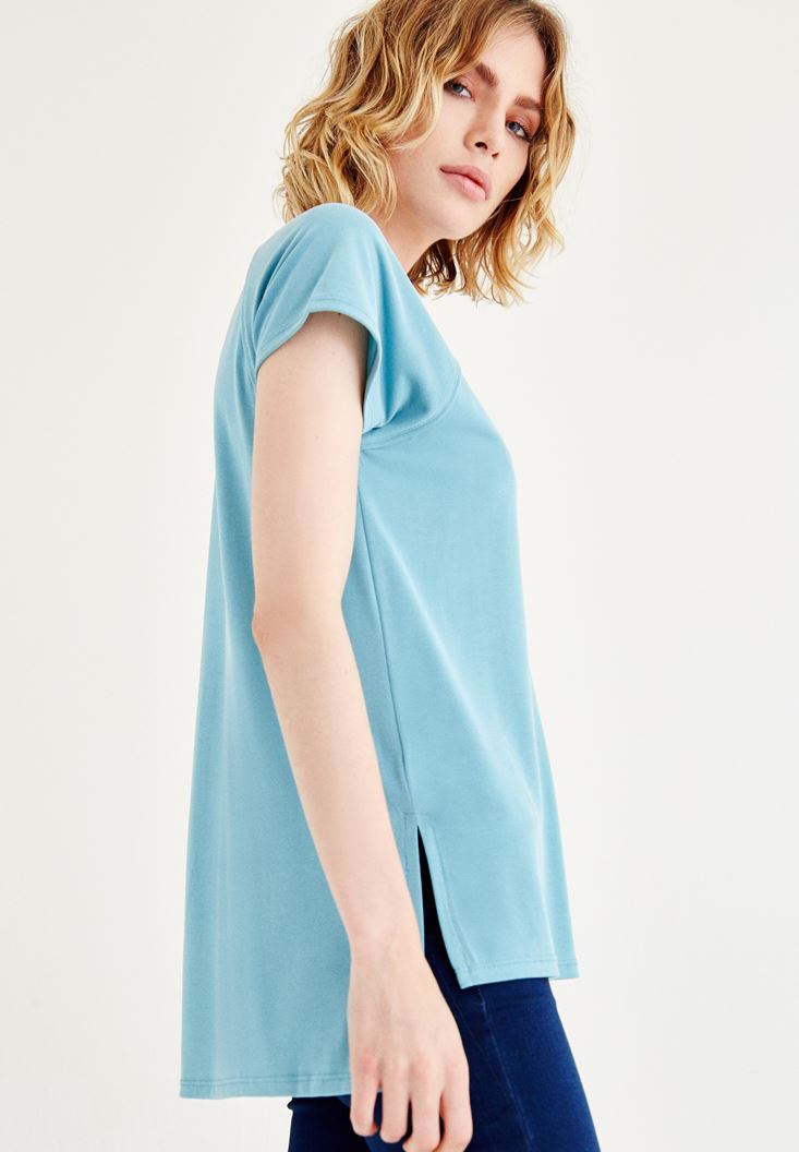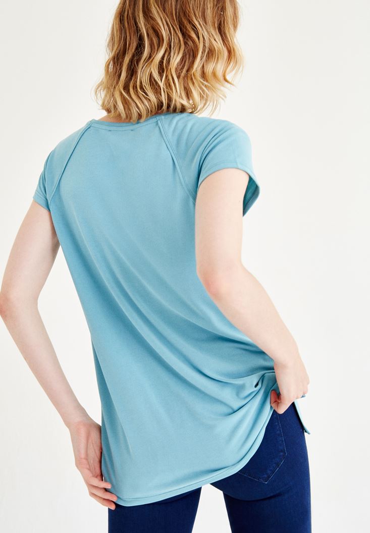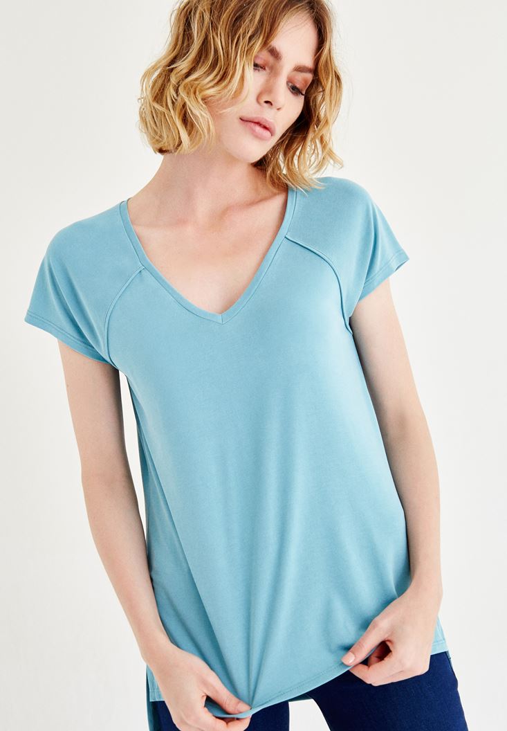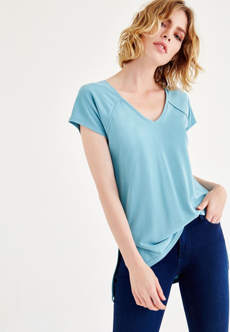 • Bayan Mavi Yumuşak Dokulu V Yaka Tişört