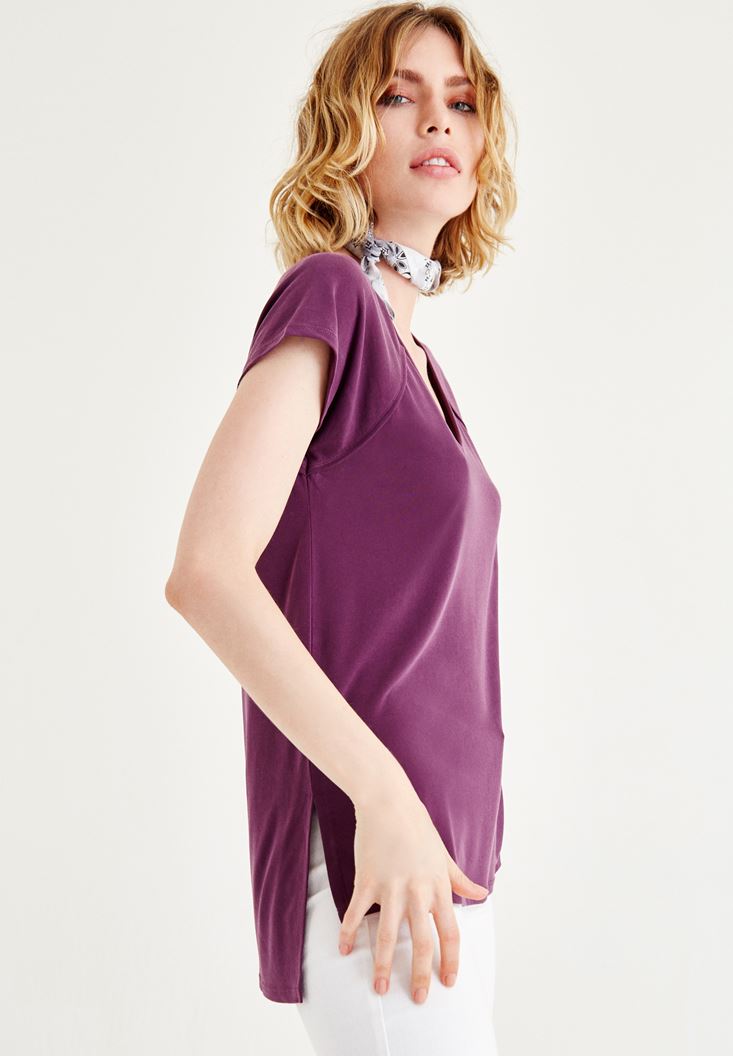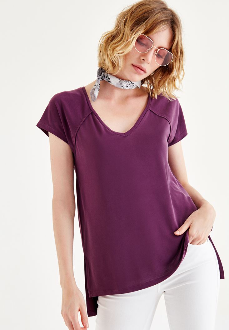 • Bayan Mor Yumuşak Dokulu V Yaka Tişört
