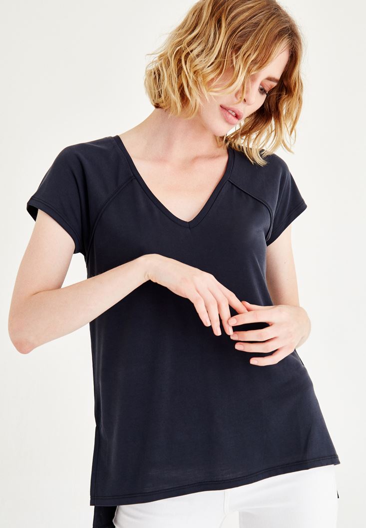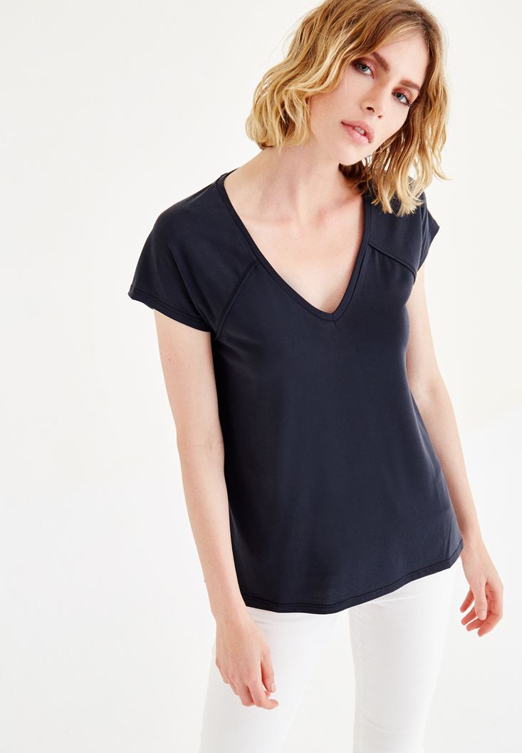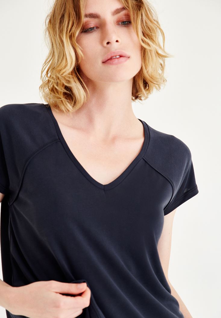 V Yaka Yarım Kollu Tişört