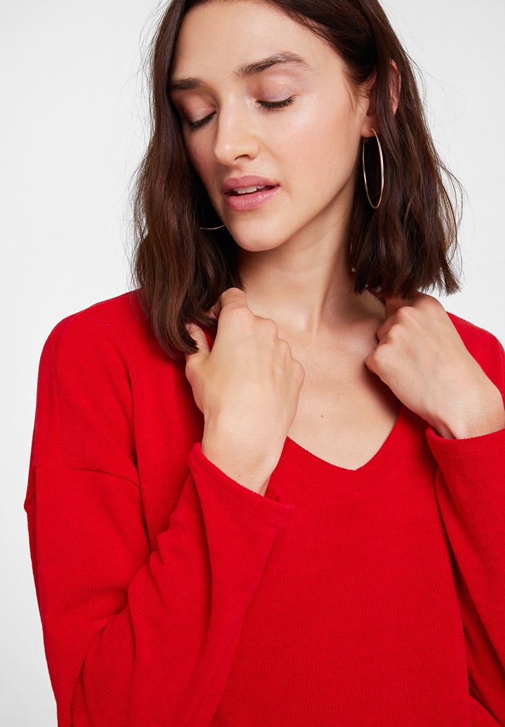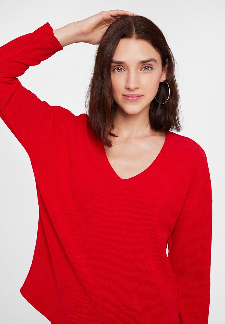 • Bayan Kırmızı Yumuşak Dokulu V Yaka Triko