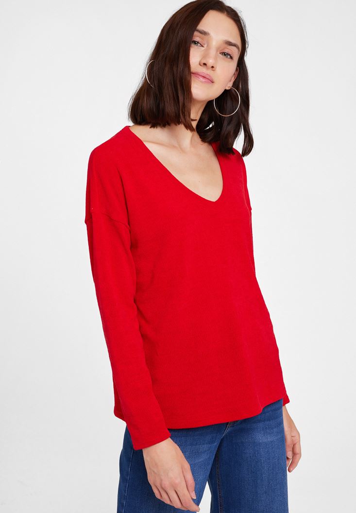 Kırmızı Yumuşak Dokulu V Yaka Triko