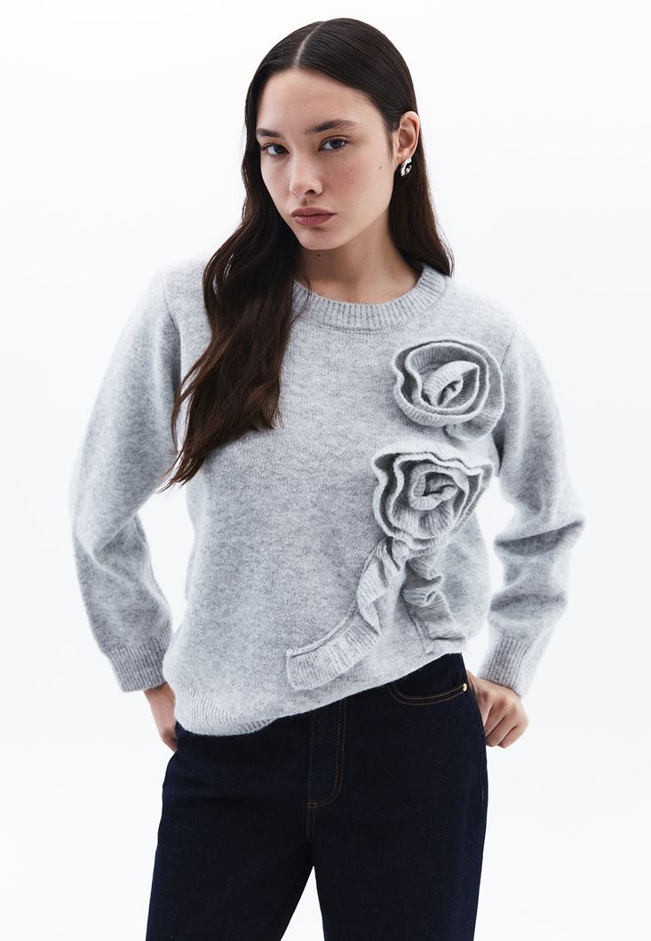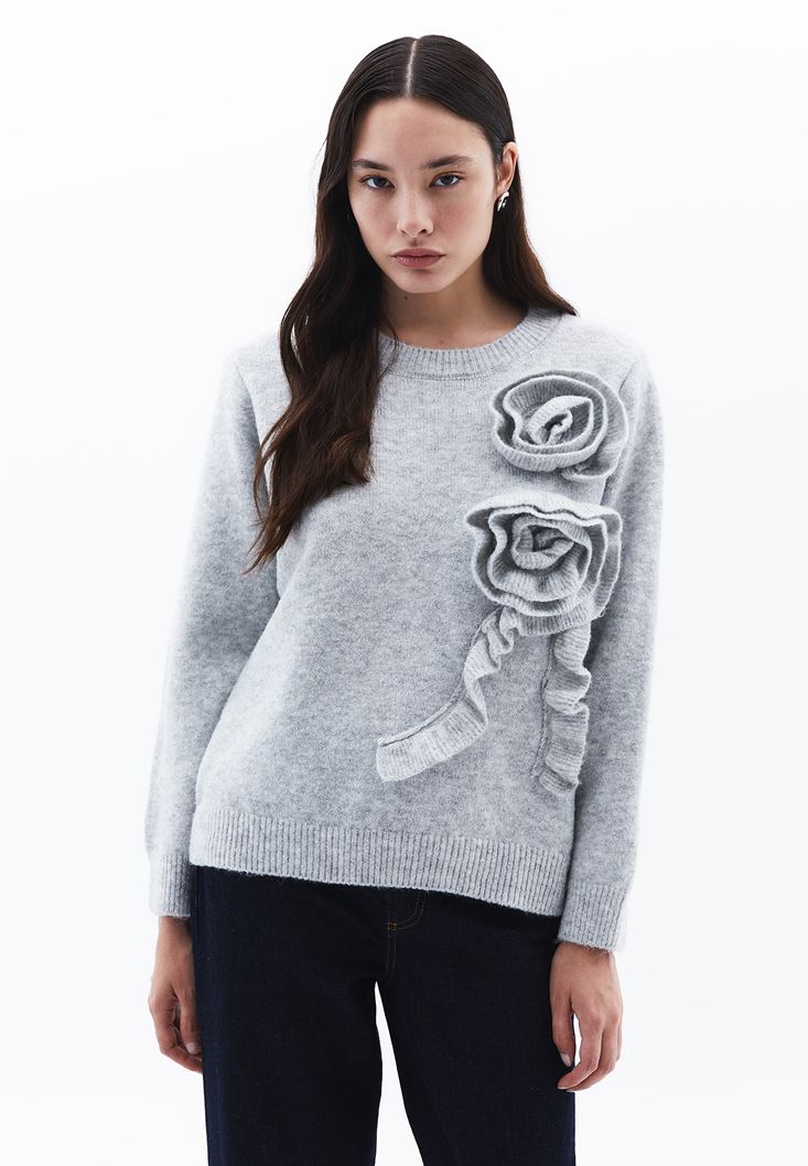 Gri Yumuşak Dokulu Yün Karışımlı Kazak