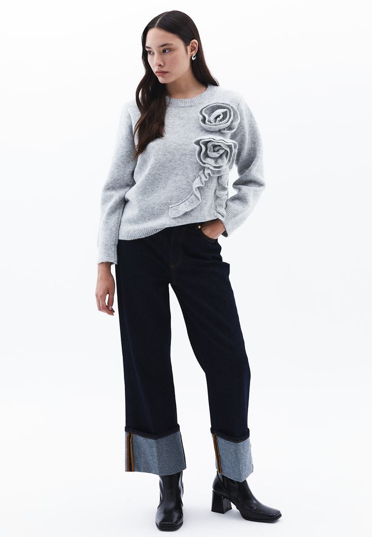 • Bayan Gri Yumuşak Dokulu Yün Karışımlı Kazak