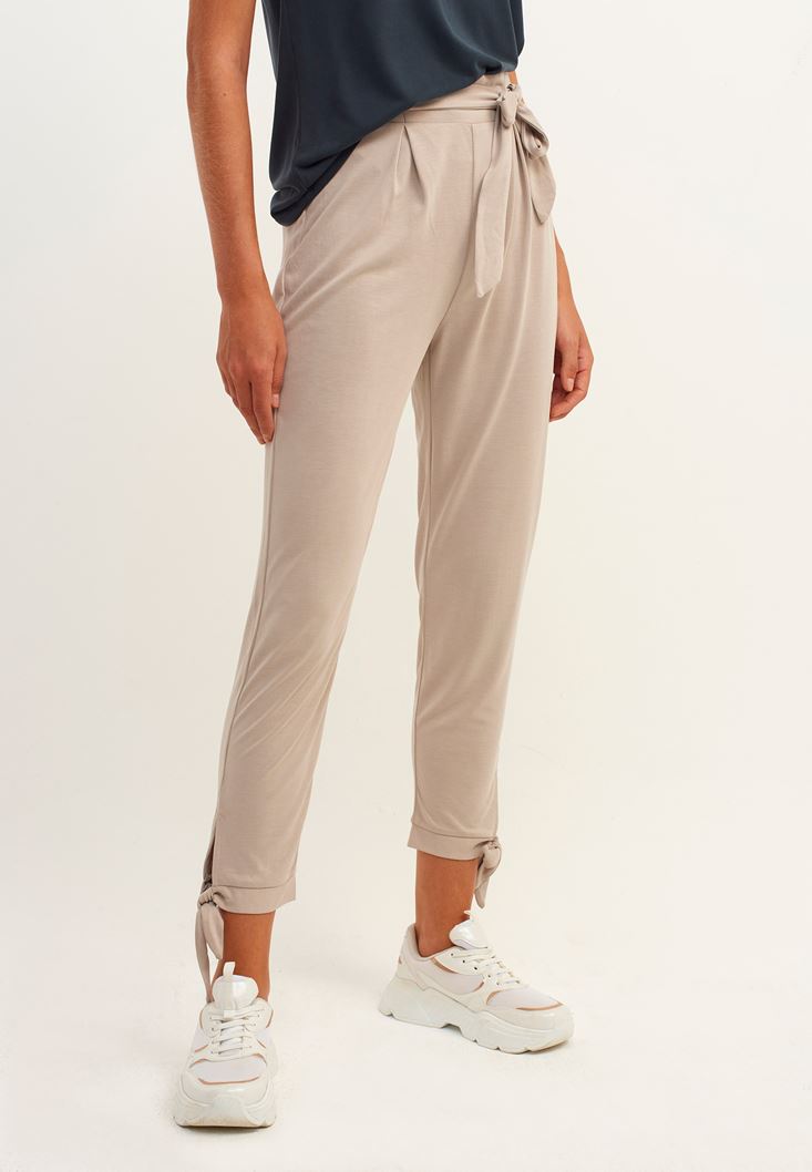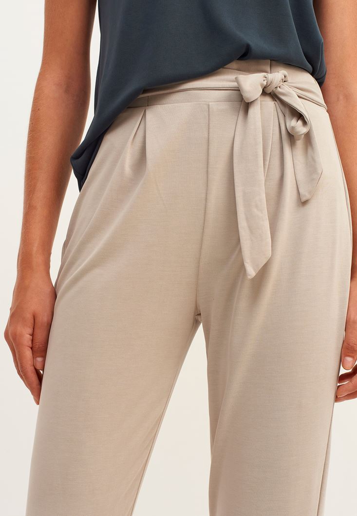 • Bayan Bej Yumuşak Tuşeli Cupro Pantolon ( MODAL )
