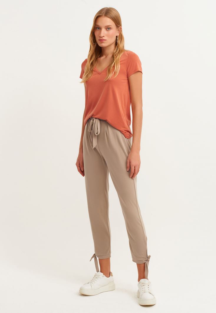 Modal karışımlı özel yumuşak doku, günlük hayat ve spor gibi aktiviteler için tasarlanmış rahat form, beli ve paçası bağlama detaylı, yüksek bel, slim paça, bel kısmı pile detaylı.