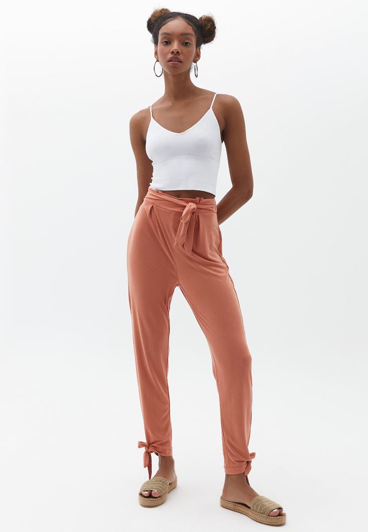 Modal karışımlı özel yumuşak doku, günlük hayat ve spor gibi aktiviteler için tasarlanmış rahat form, beli ve paçası bağlama detaylı, yüksek bel, slim paça, bel kısmı pile detaylı.