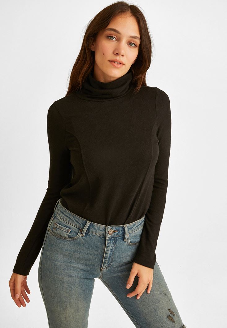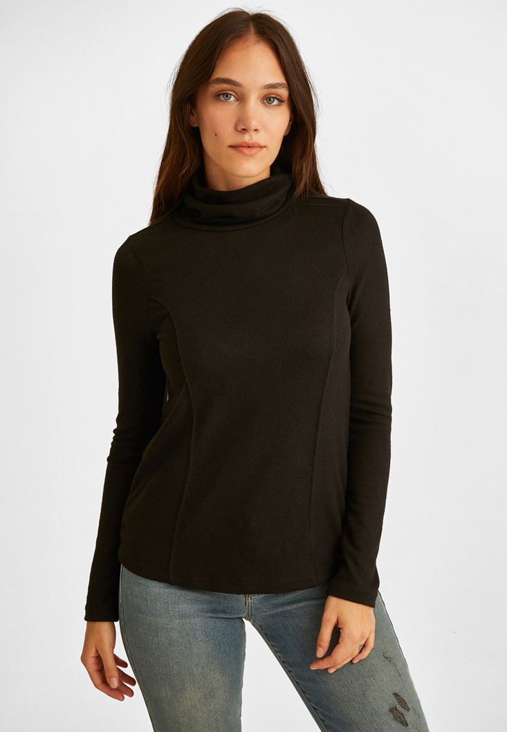 • Bayan Siyah Yumuşak Tuşeli Kazak