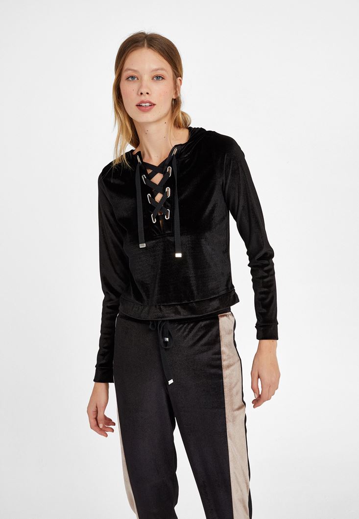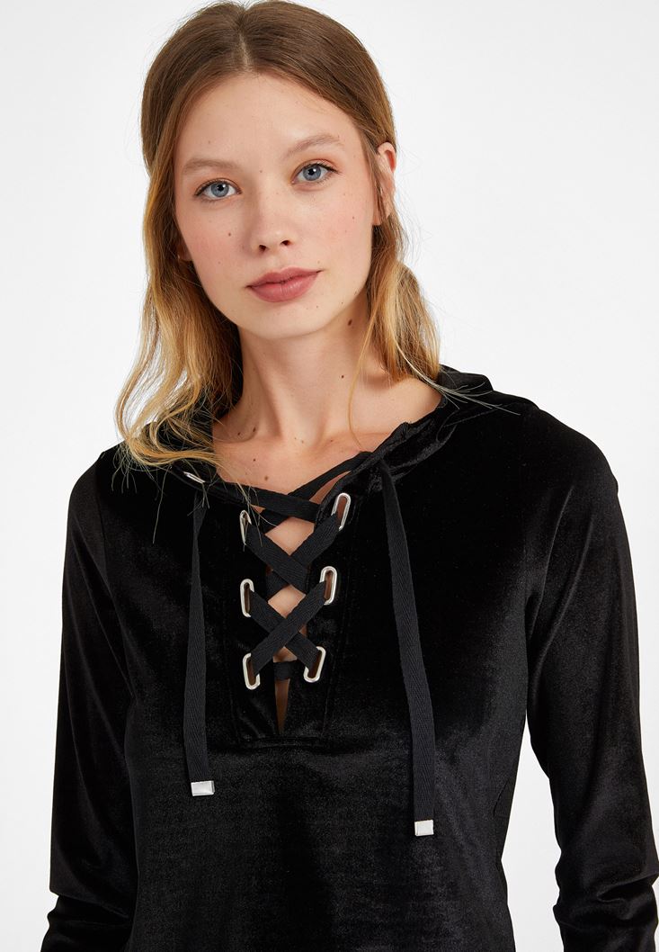 • Bayan Siyah Yumuşak Tuşeli Sweatshirt