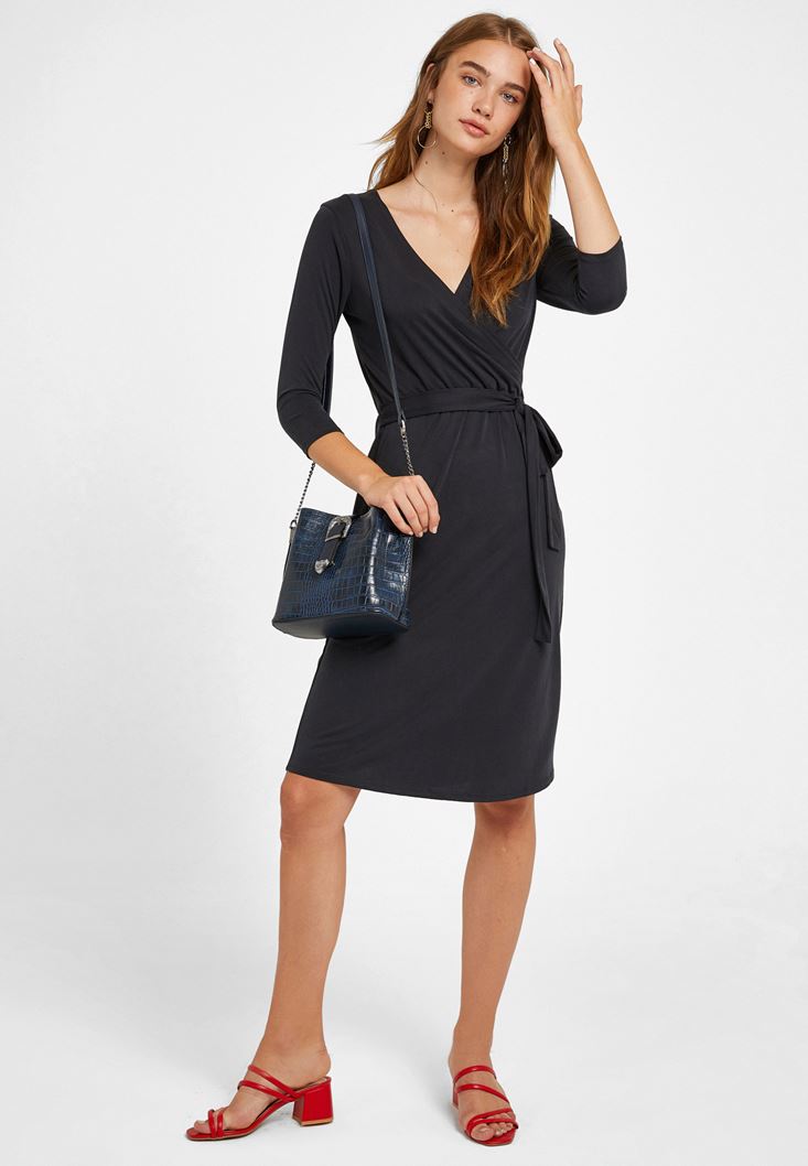 Yumuşak Tuşeli V Yaka Elbise modeli hem günlük hem de özel günlerde kullanılabilme seçeneğiyle ön plana çıkıyor. Oxxo kadın elbise modeli; doğal içerikli yapısı ve verdiği yumuşaklık hissi sizi baştan çıkarmaya şimdiden hazır. Kruvaze yaka tasarımı olan kısa elbise ile hayranlık uyandıran kombinler oluşturabilir, tüm dikkatleri üzerinize çekebilirsiniz. Bel kısmında bulunan kuşak detayı ile zarif duruşunuzu tek parça şıklığı ile birleştirebilirsiniz. Truvakar kol kesimi, asil duruşu ve bedeni sarmayan kalıbı ile oldukça zarif, modern bir elbise modeli olarak sizlerle buluşuyor. Yumuşak tuşeli kumaştan üretilen kısa elbise modeli; dizüstü hizasındaki eteğine uyum sağlayacak olan çizme ve botlarla göz alıcı duruyor. Oxxo'nun kısa elbise modelleri arasında yer alan, kombinlerinize sadelik ve şıklık katan bu elbiseye tek tıkla oxxo.com.tr’den ulaşabilirsiniz