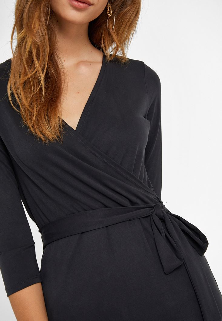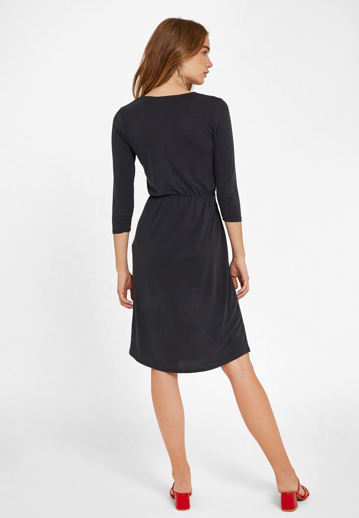 • Bayan Siyah Yumuşak Tuşeli V Yaka Elbise