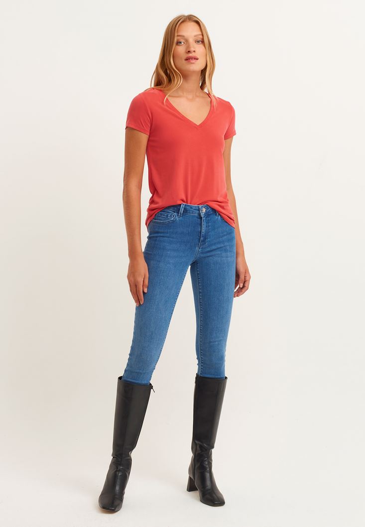 • Bayan Kırmızı Yumuşak Tuşeli V Yaka Tişört ( MODAL )