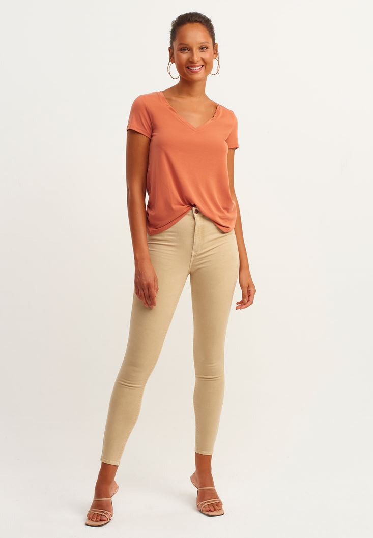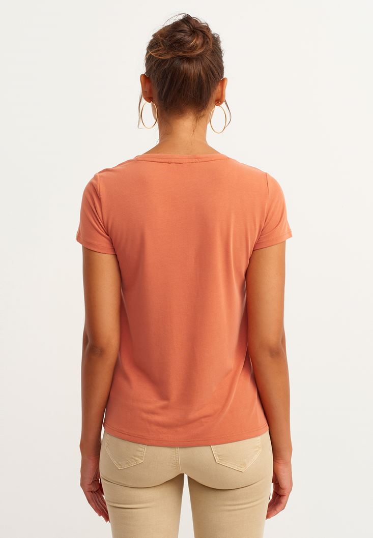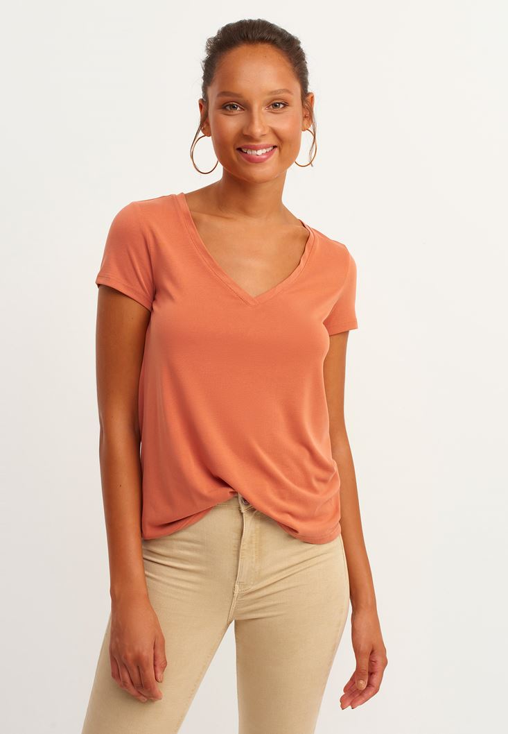 • Bayan Turuncu Yumuşak Tuşeli V Yaka Tişört ( MODAL )