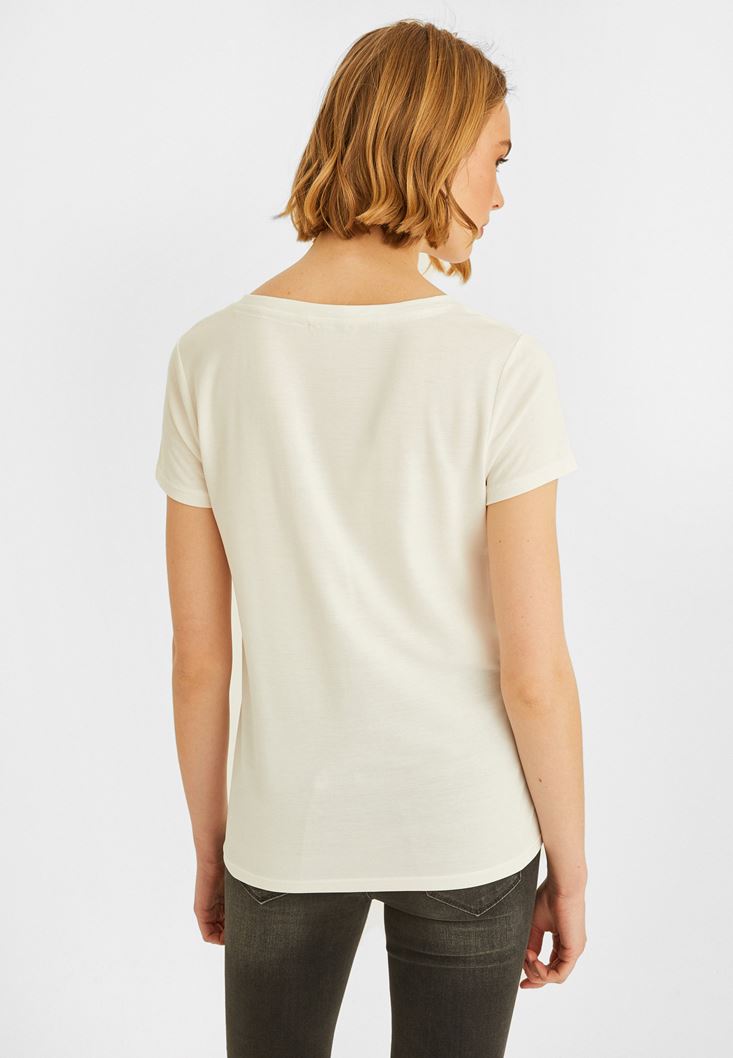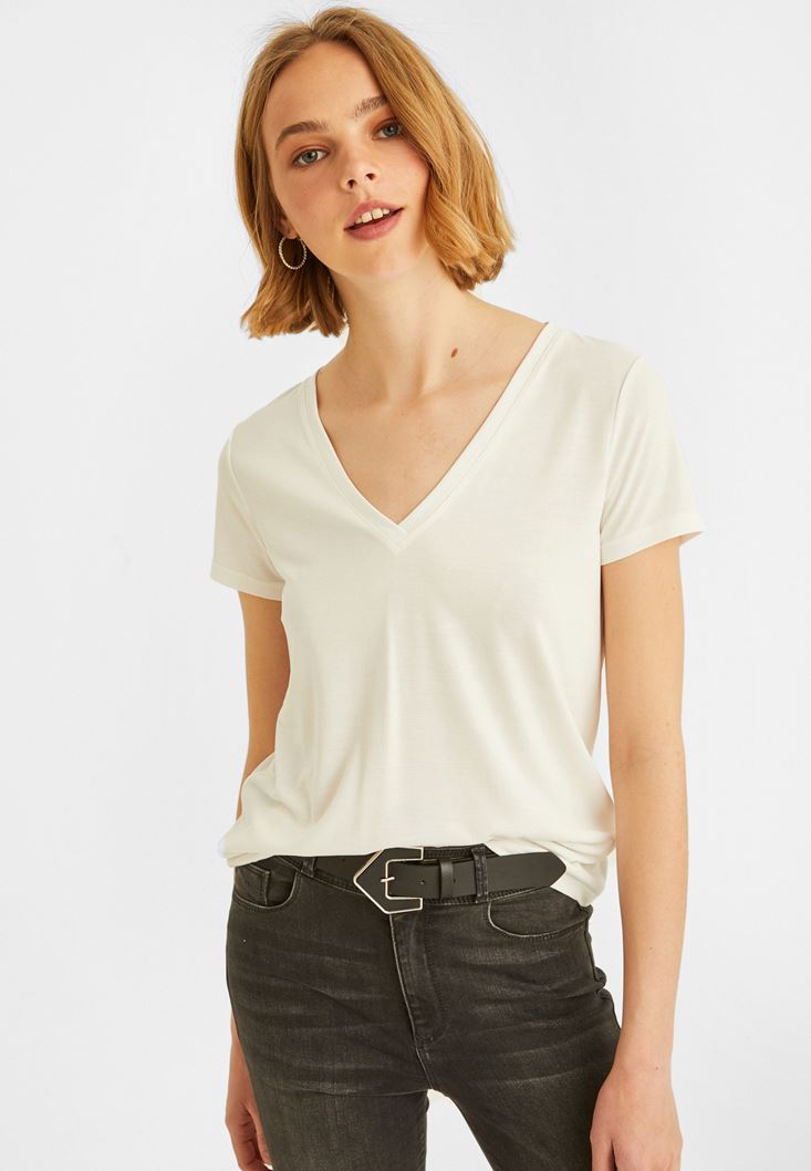• Bayan Krem Yumuşak Tuşeli V Yaka Tişört ( MODAL )