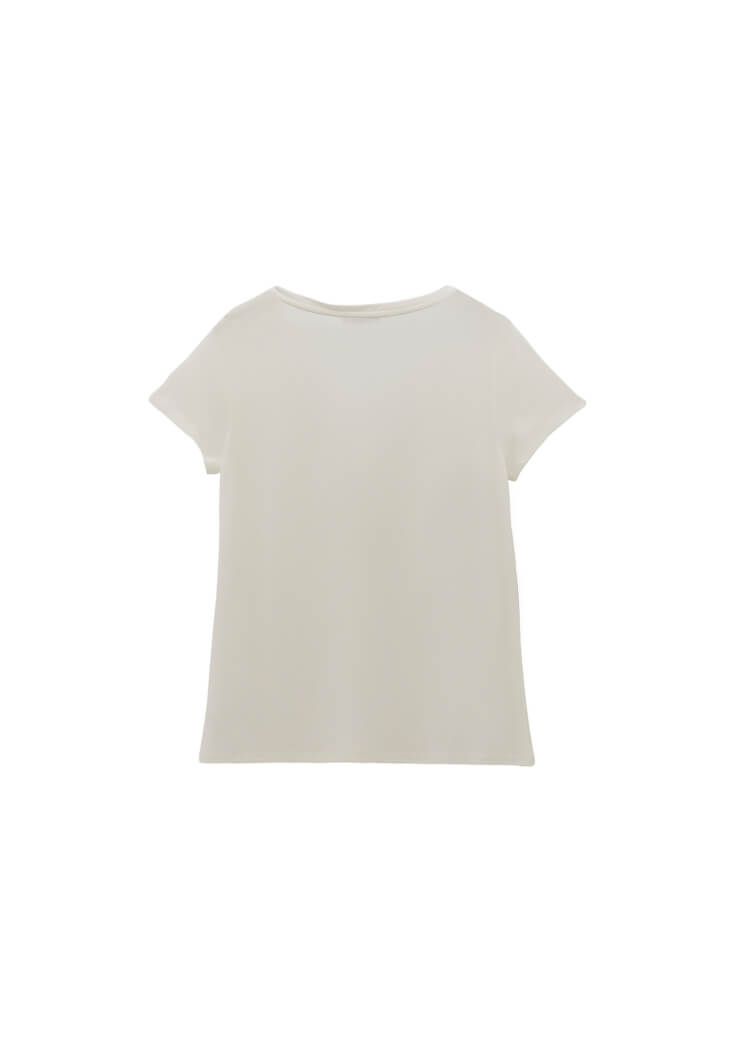 • Bayan Krem Yumuşak Tuşeli V Yaka Tişört ( MODAL )