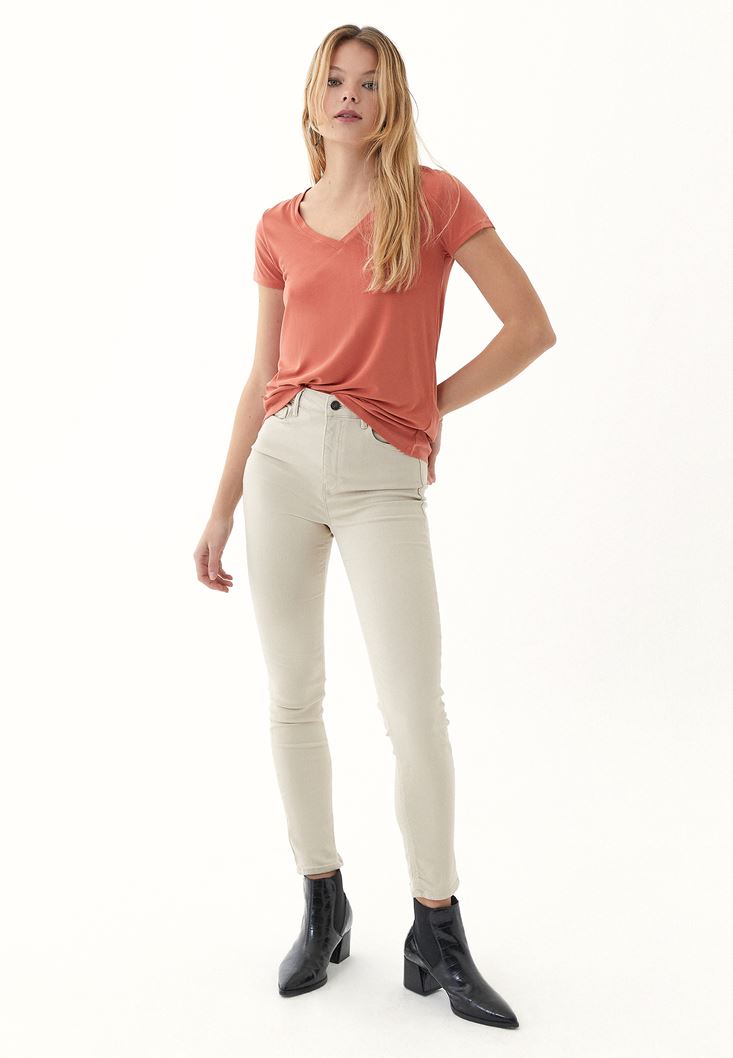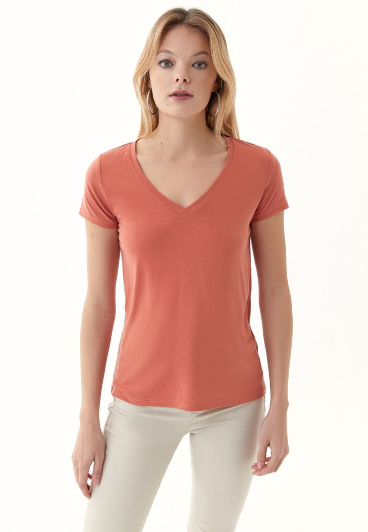 • Bayan Turuncu Yumuşak Tuşeli V Yaka Tişört ( MODAL )