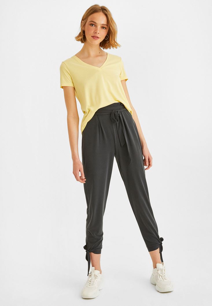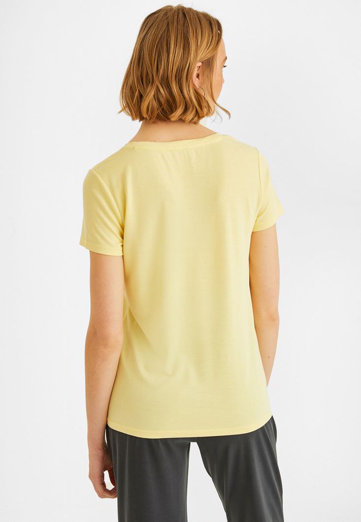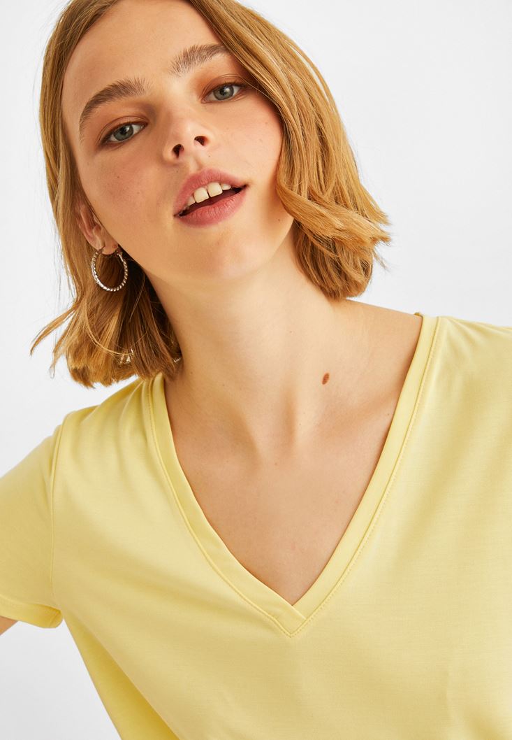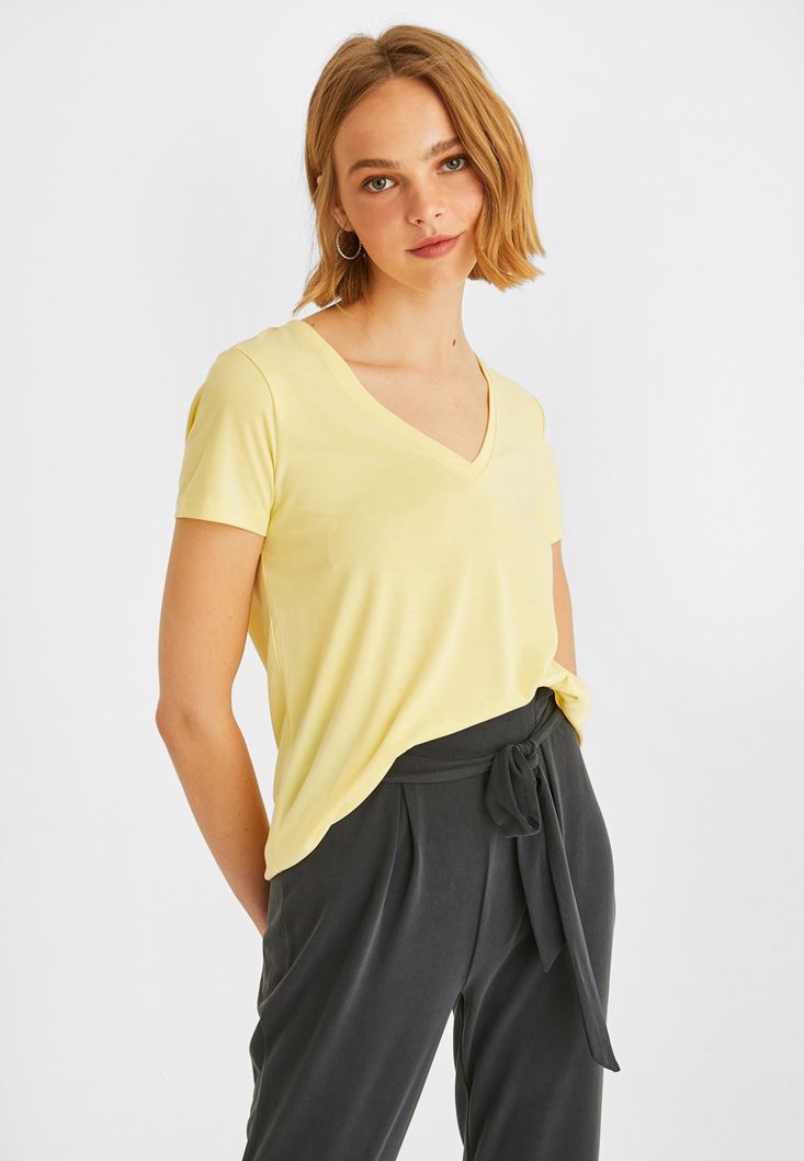 • Bayan Sarı Yumuşak Tuşeli V Yaka Tişört