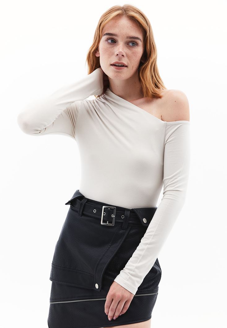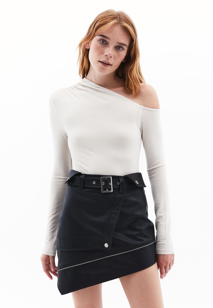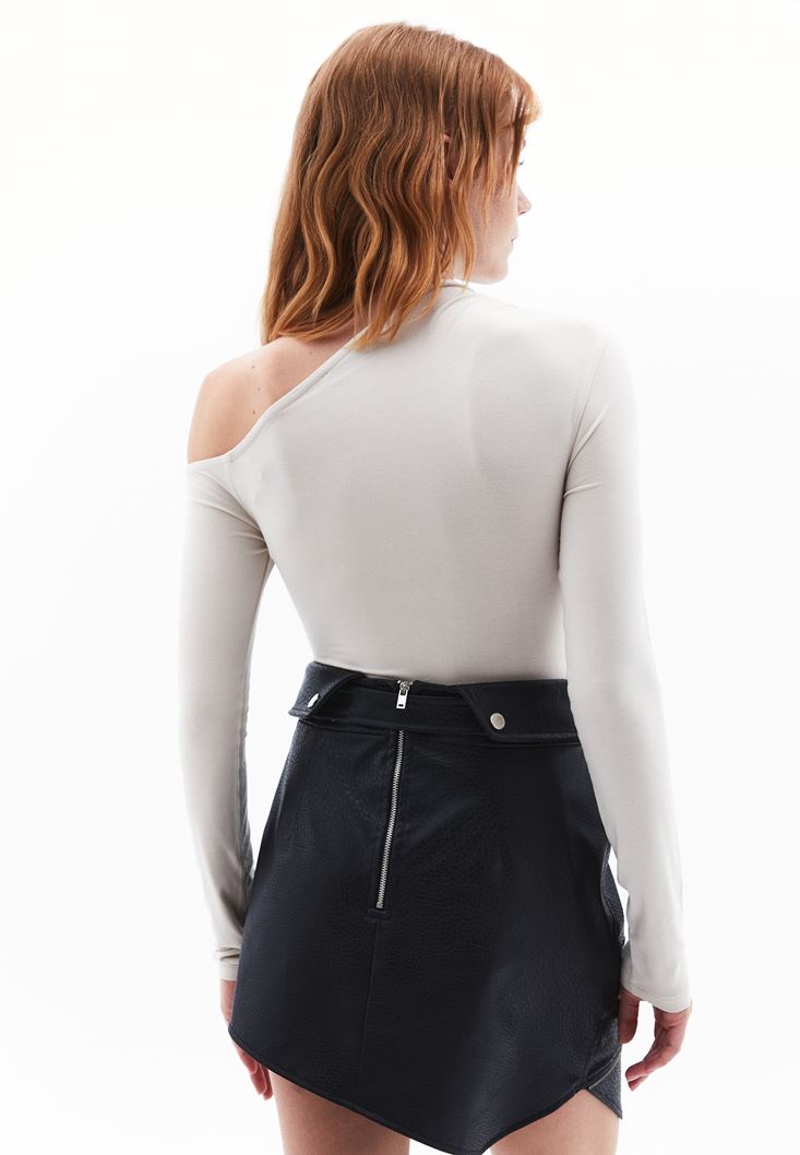 Asimetrik Yaka Bodysuit ve Etek Kombini