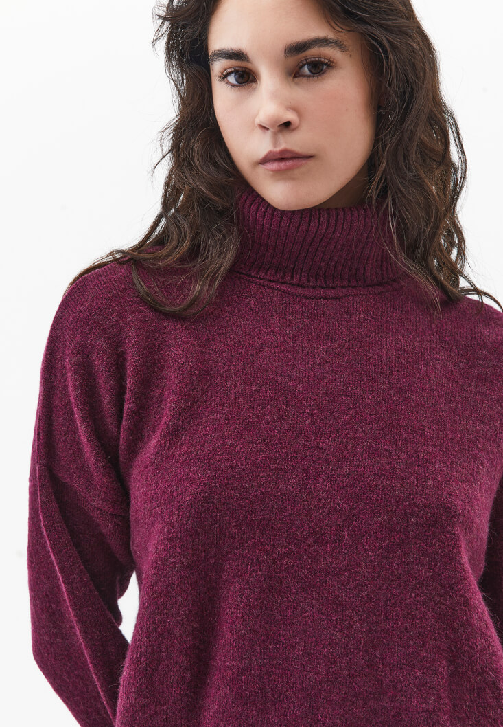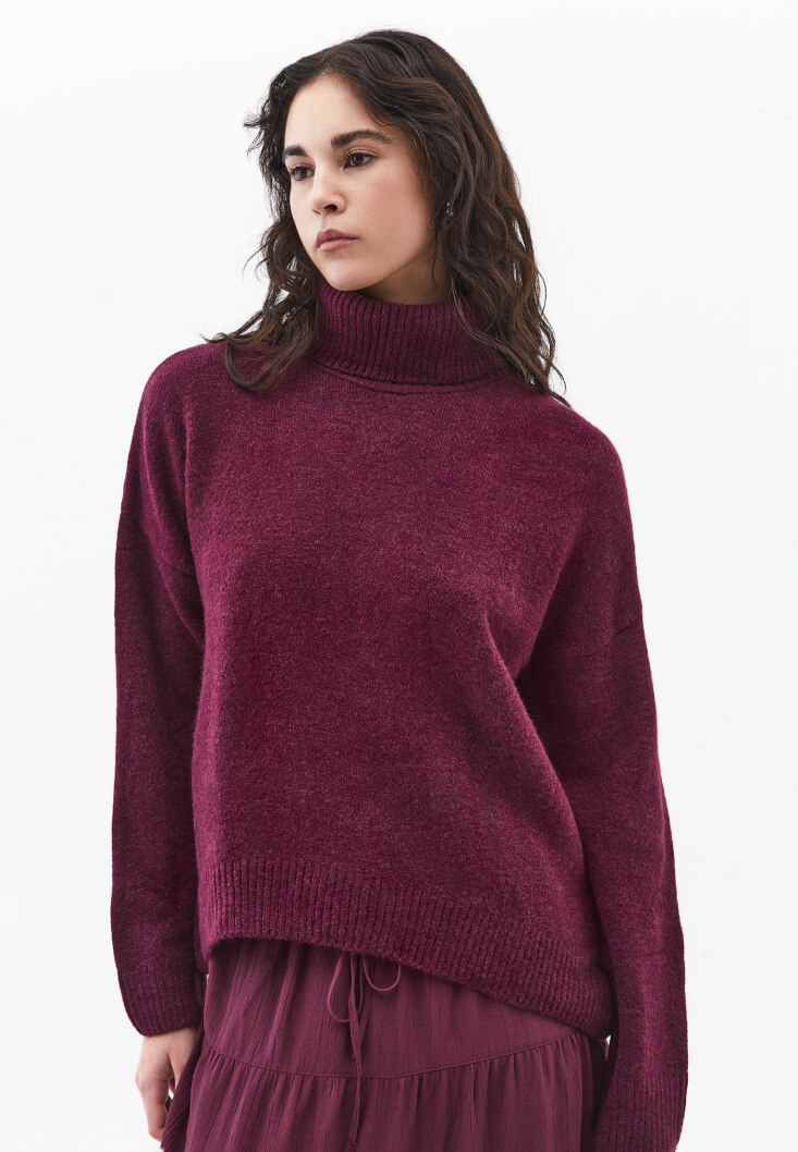 Mor Yün Karışımlı Balıkçı Yaka Kazak