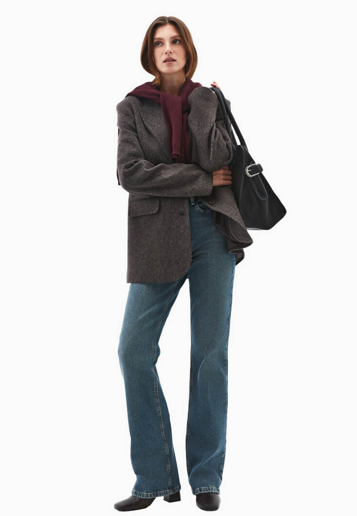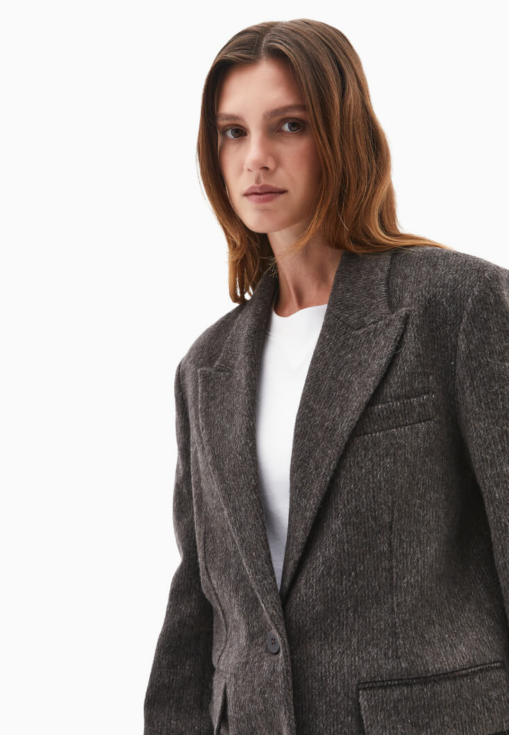 • Bayan Kahverengi Yün Karışımlı Blazer Ceket