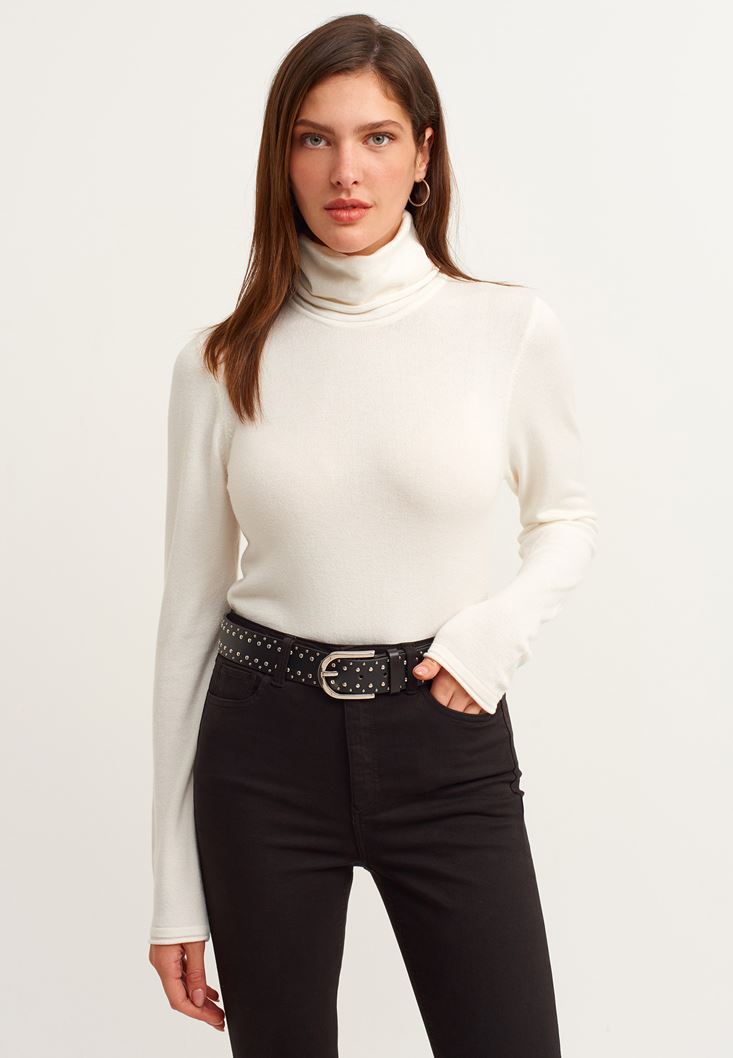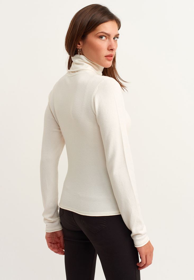 Krem Yün Karışımlı Boğazlı Triko
