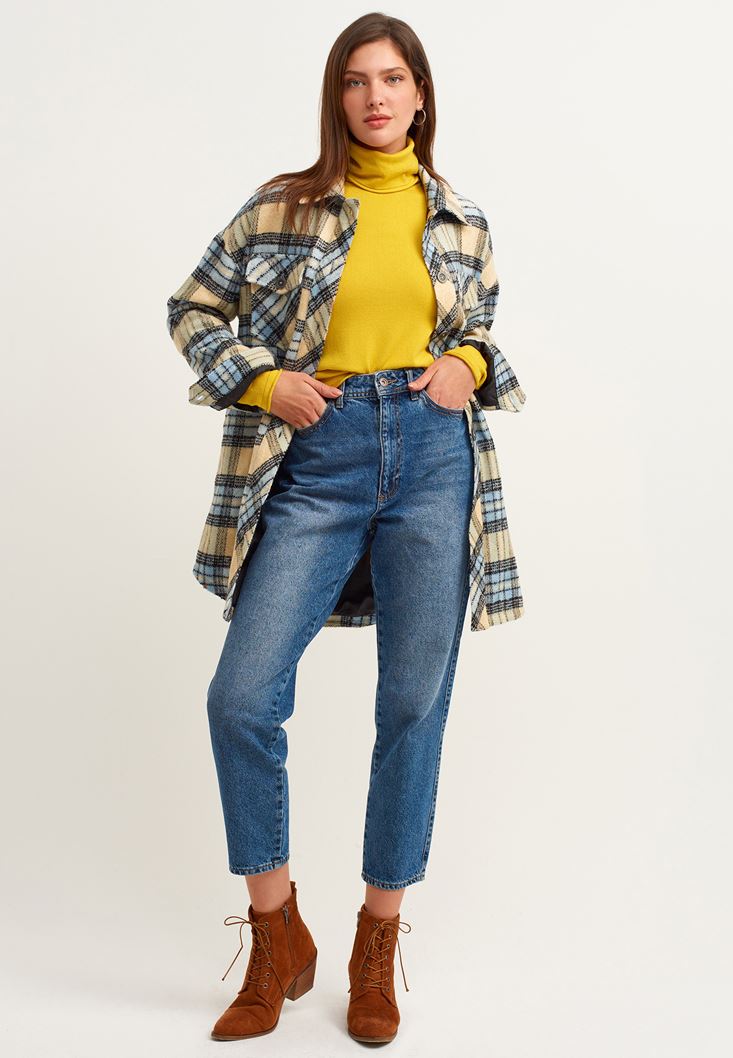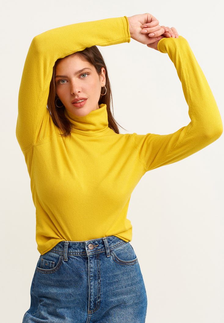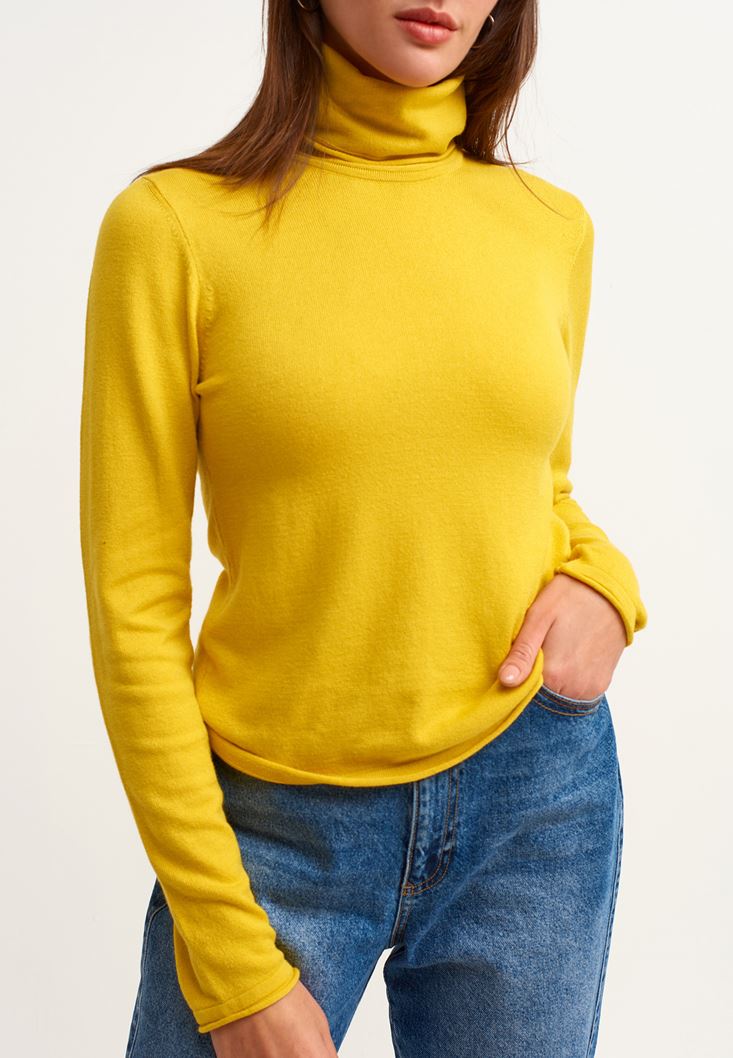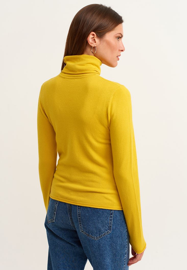 • Bayan Sarı Yün Karışımlı Boğazlı Triko