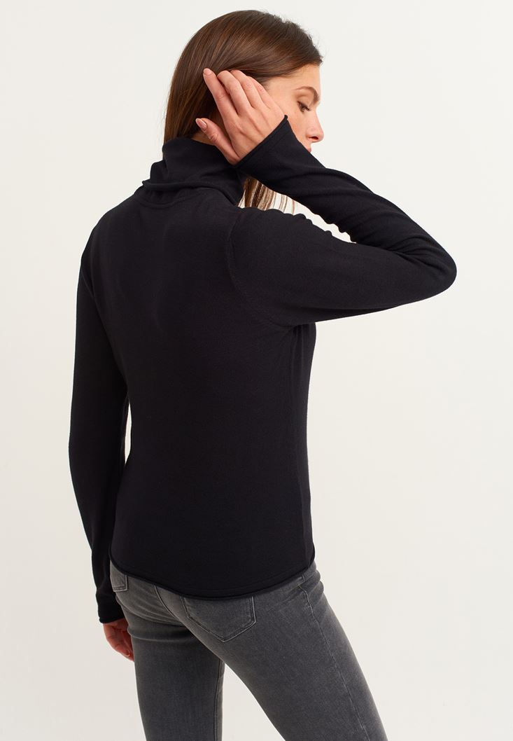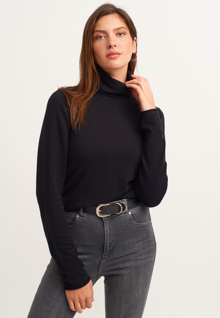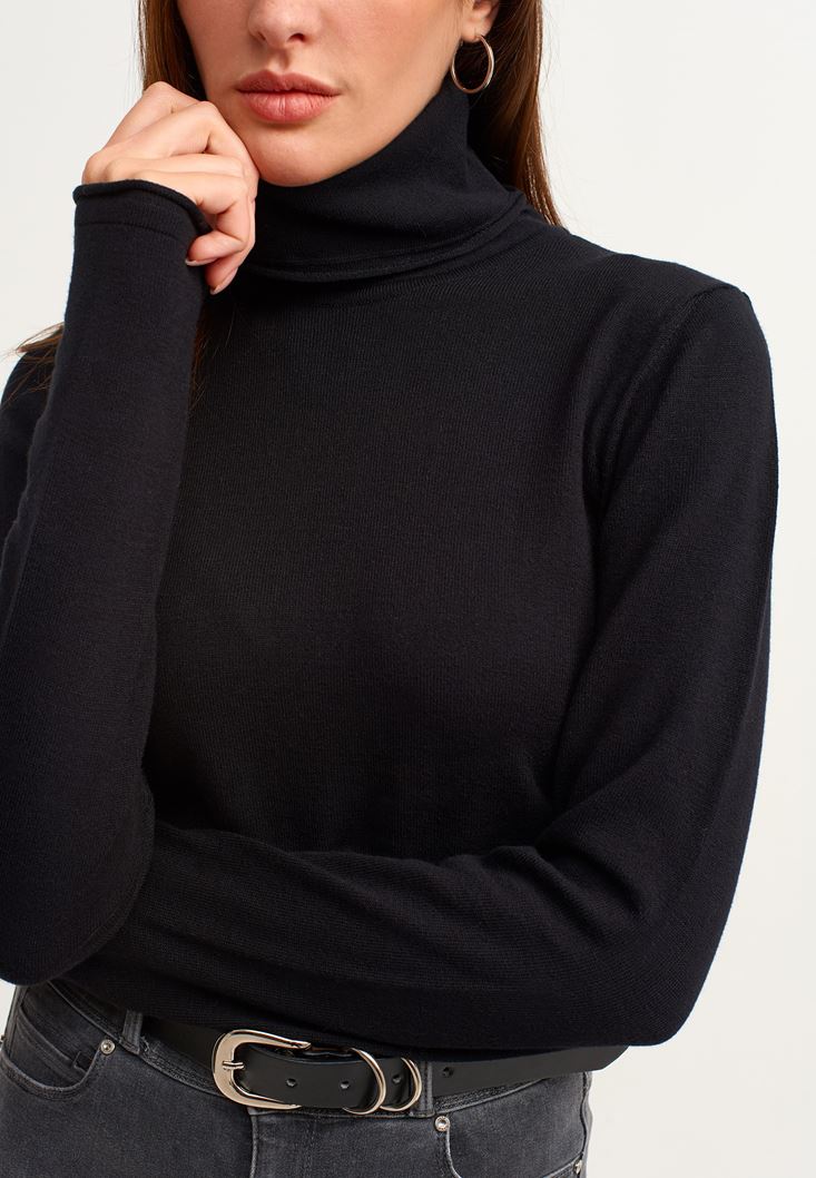 • Bayan Siyah Yün Karışımlı Boğazlı Triko