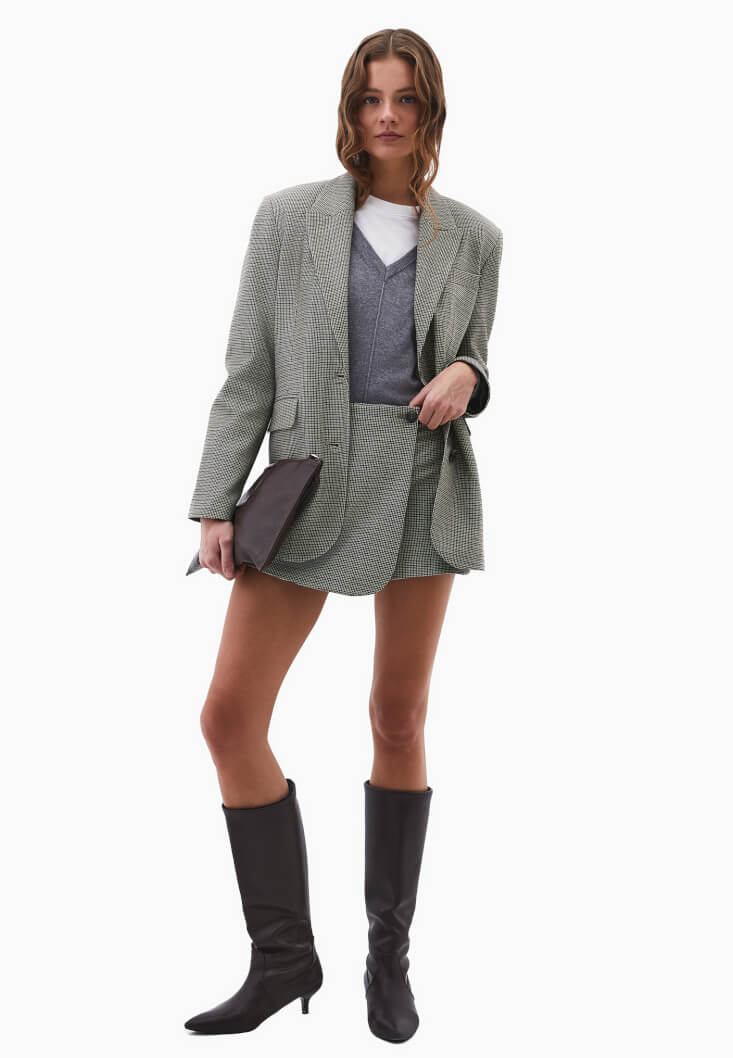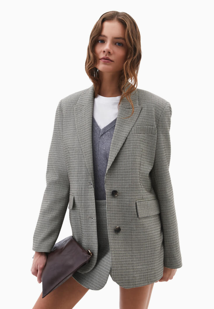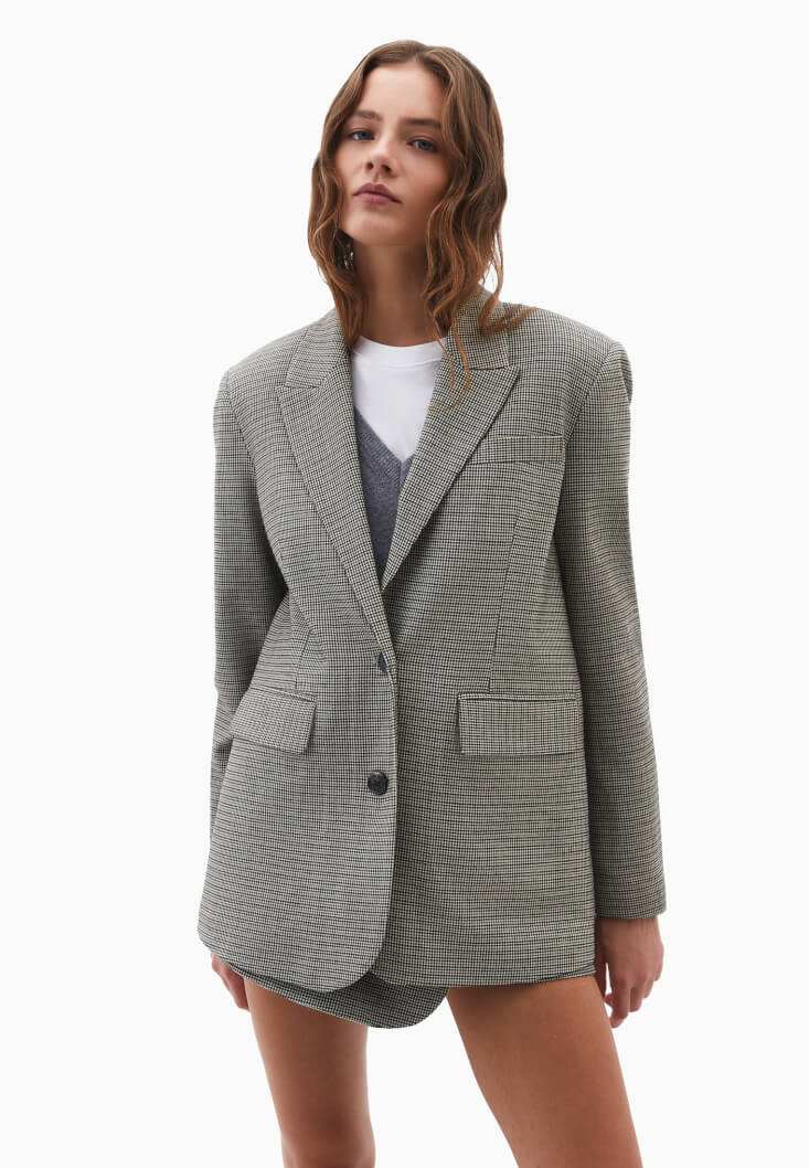 Yün karışımlı dokusuyla sıcak ve konforlu bir his sunan bu blazer, boyfriend kesimiyle maskülen çizgiyi zarif bir şekilde yorumluyor. Boyfriend yapısı sayesinde vücuda rahatça oturur ve modern bir duruş kazandırır.
