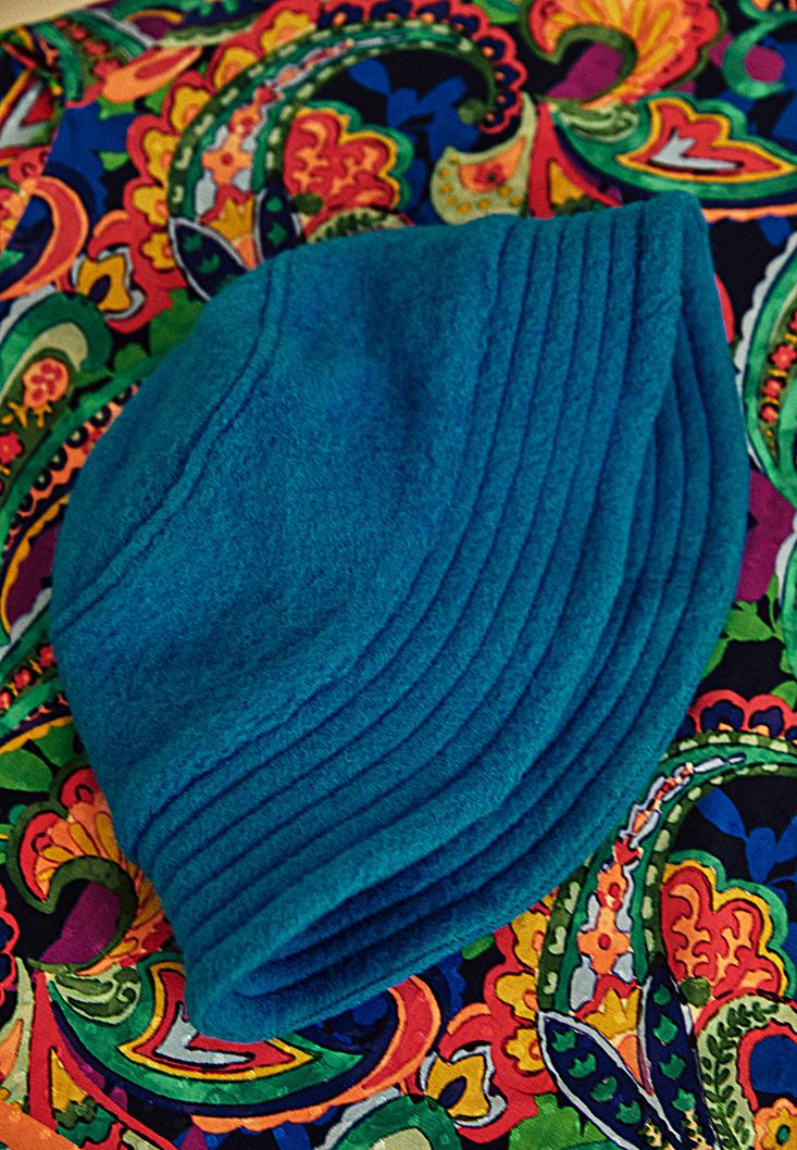 • Bayan Mavi Yün Karışımlı Bucket Şapka