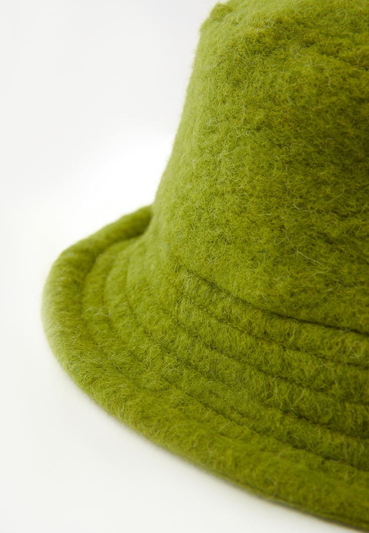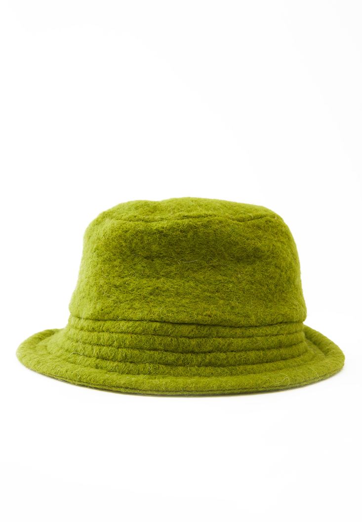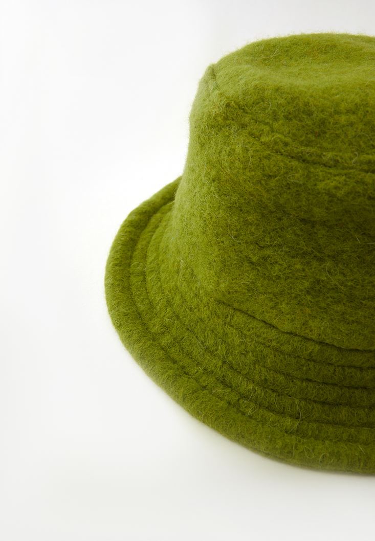 Yeşil Yün Karışımlı Bucket Şapka