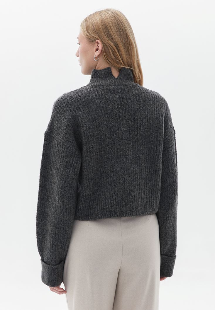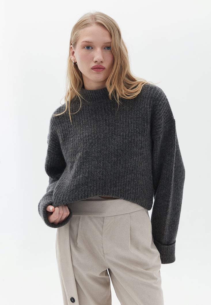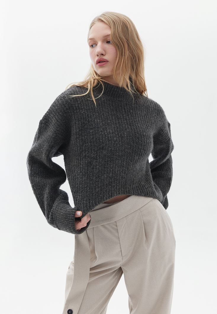 • Bayan Gri Yün Karışımlı Crop Kazak