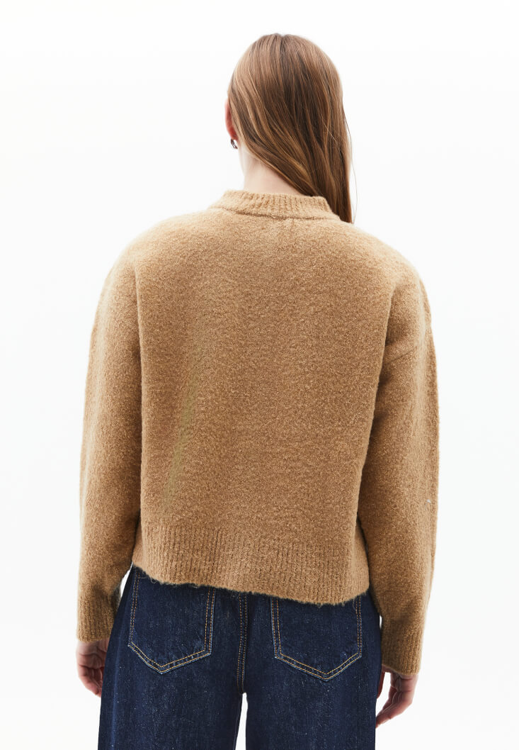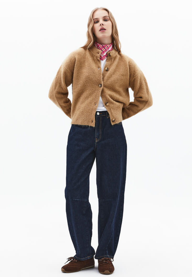 • Bayan Bej Yün Karışımlı Düğmeli Hırka