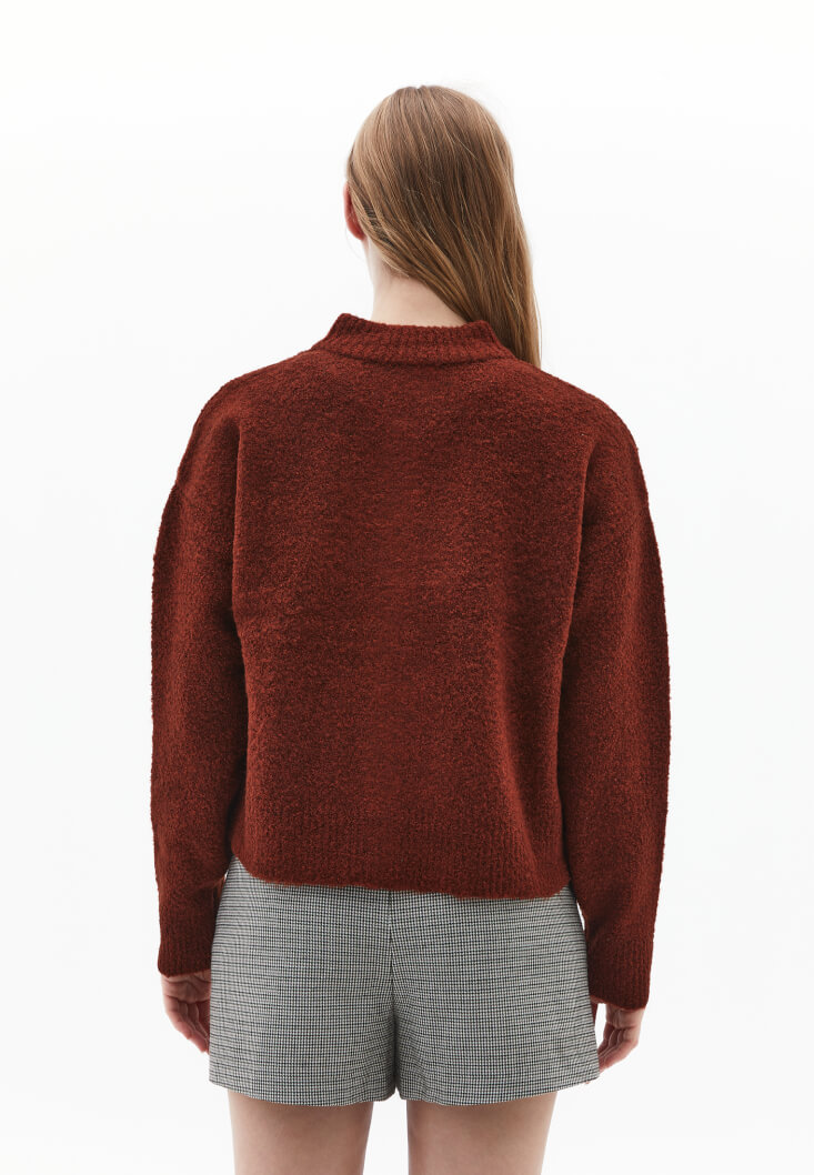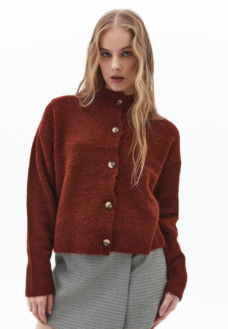 • Bayan Bordo Yün Karışımlı Düğmeli Hırka