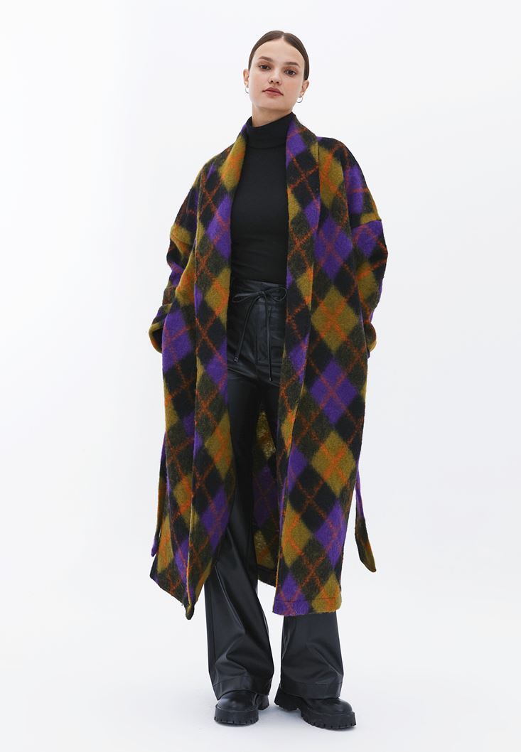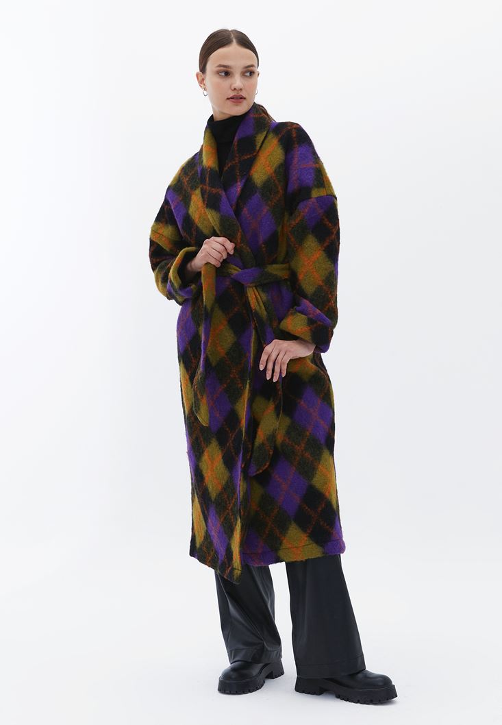 Çok Renkli Yün Karışımlı Ekoseli Kaban