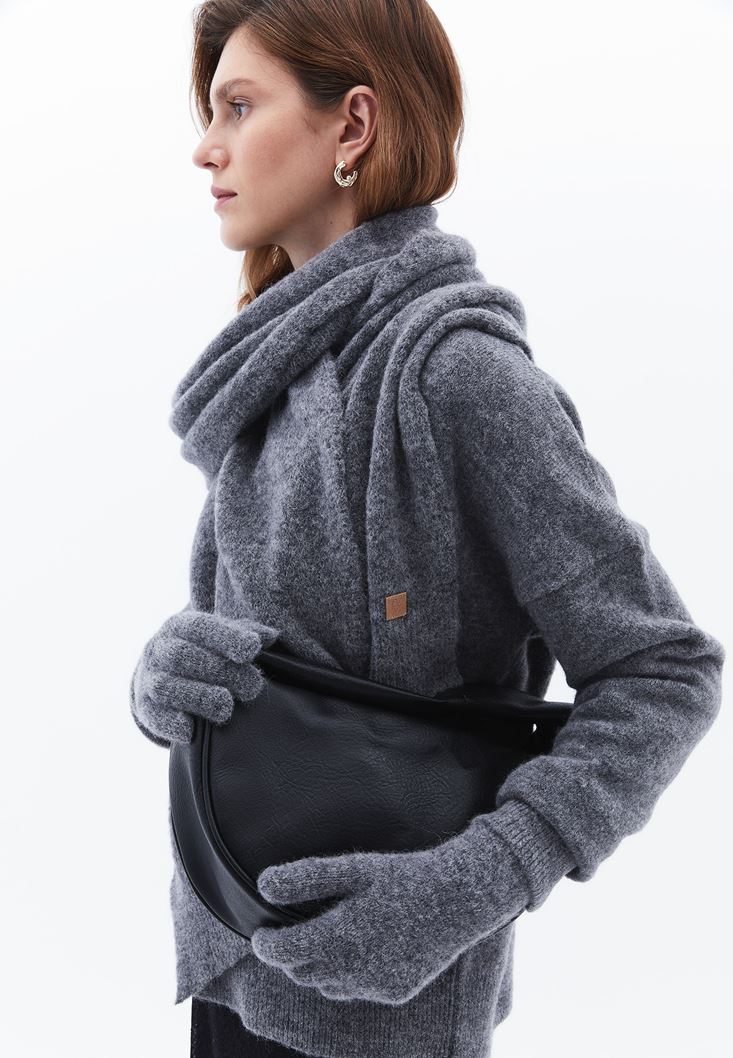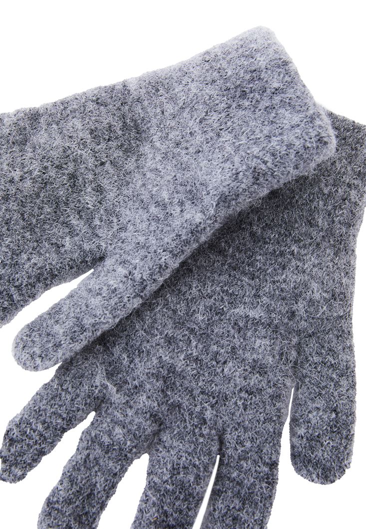 Gri Yün Karışımlı Eldiven