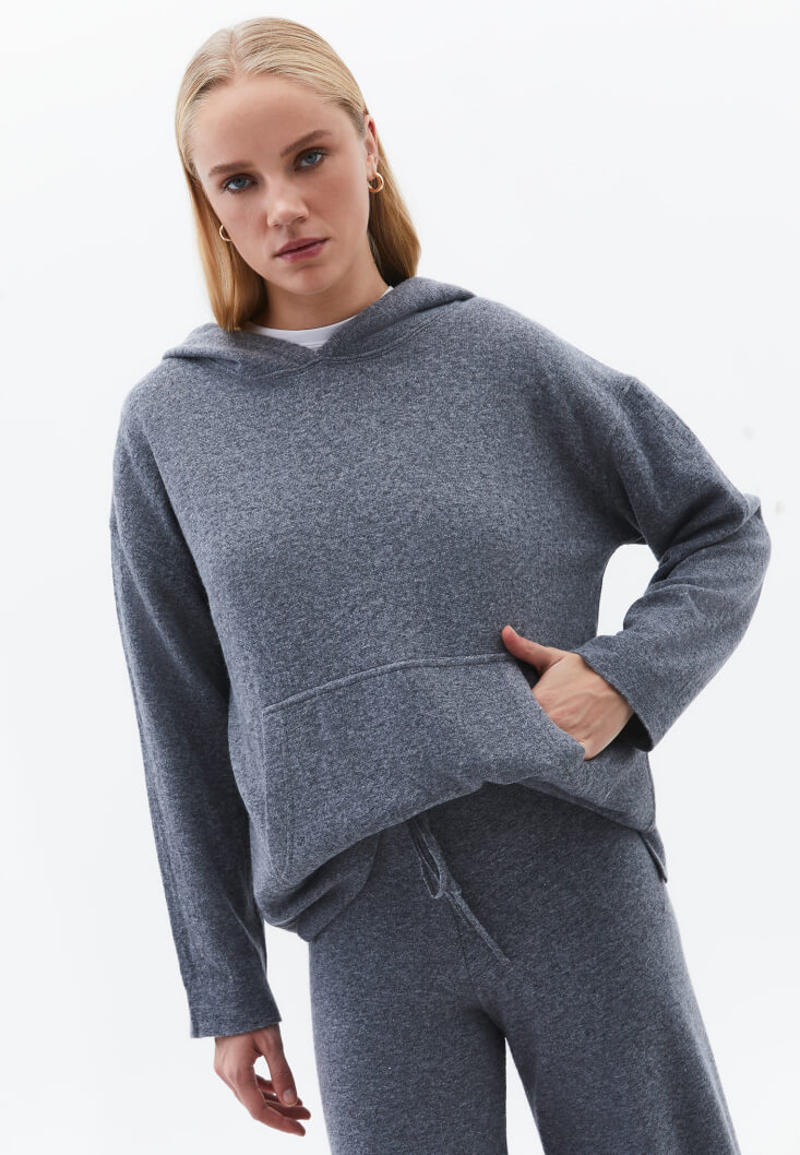 Füme Yün Karışımlı Kapüşonlu Kazak